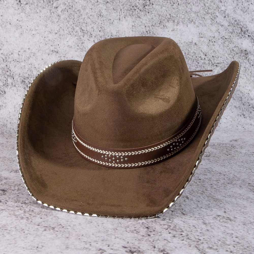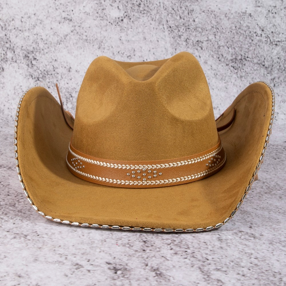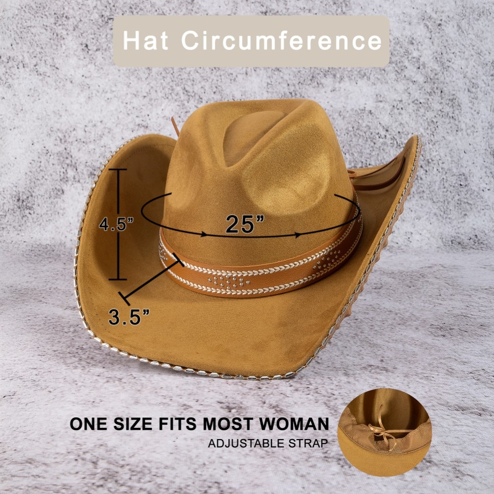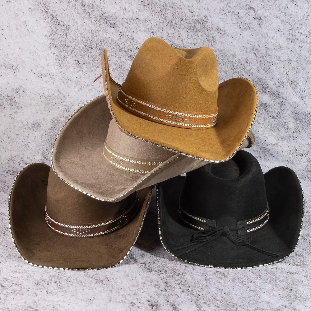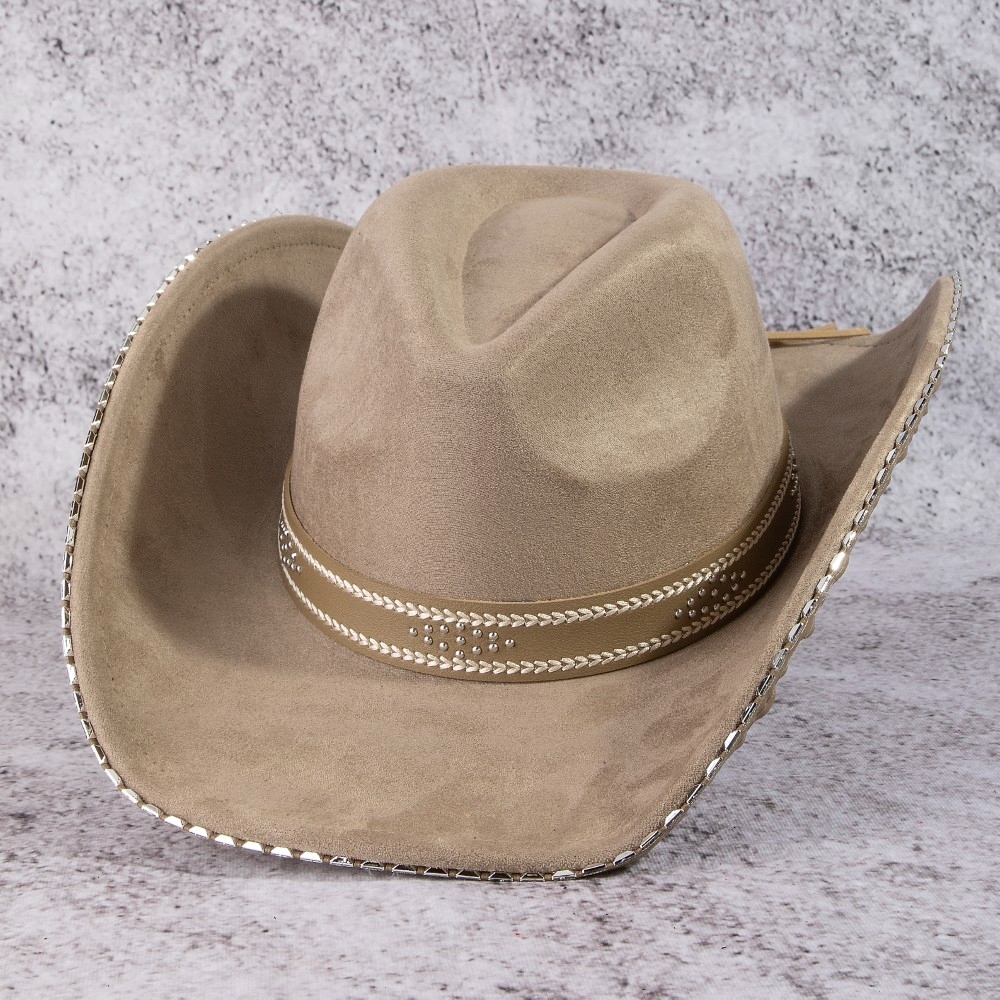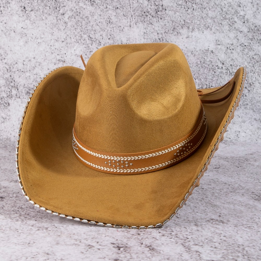 The perfect way to add some sparkle to your outfit, this cowboy hat carries a charming western studded trim design. The perfect cowboy hat for completing any outfit, whether you're dressing up or keeping it casual. This item is sold in packs of 12.