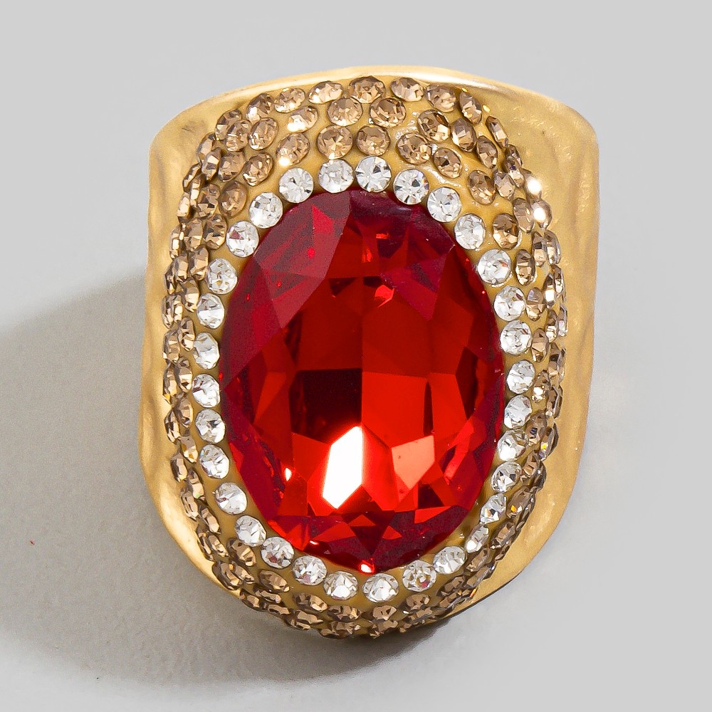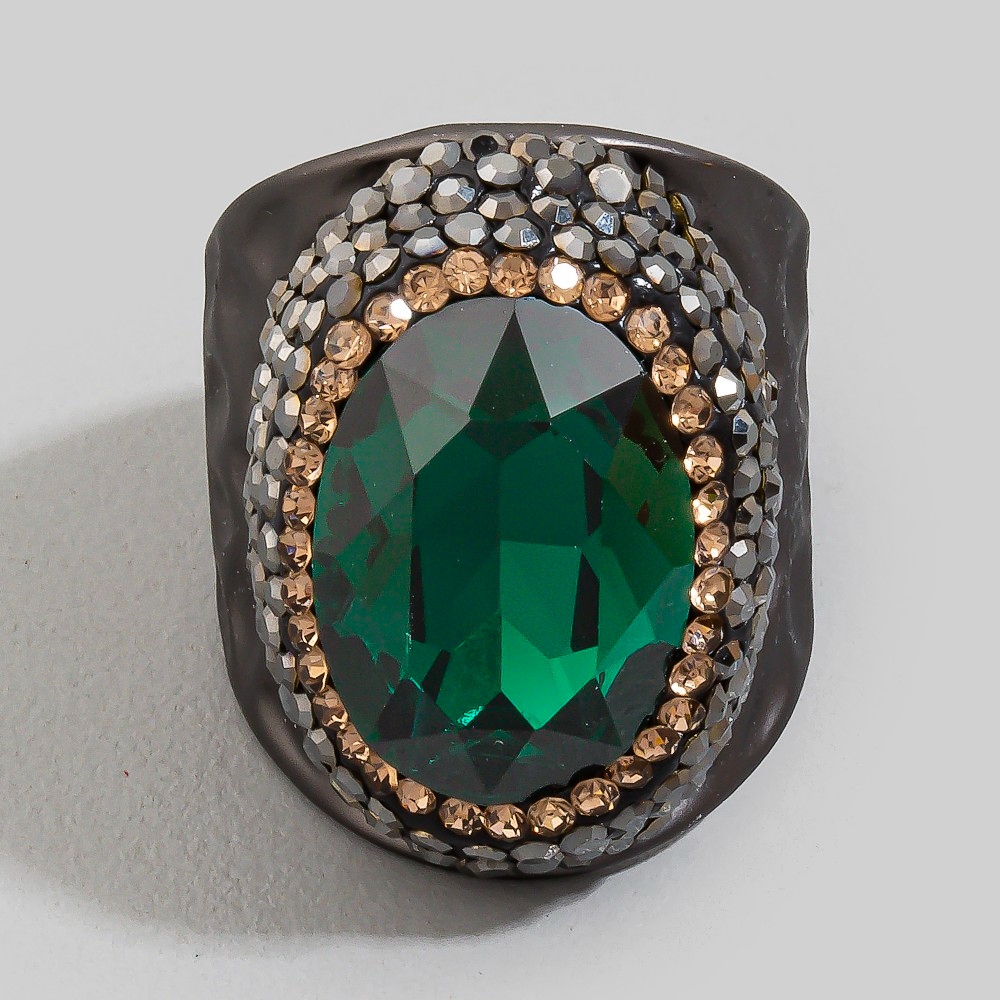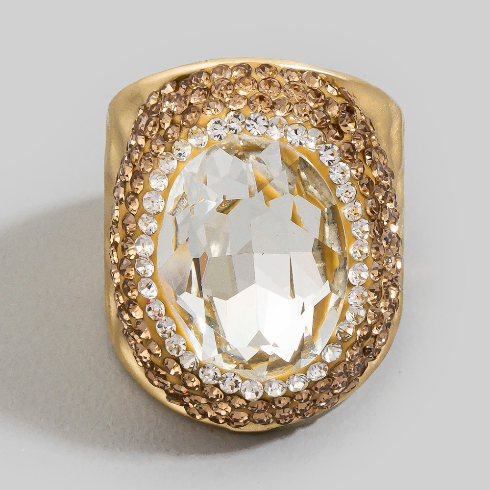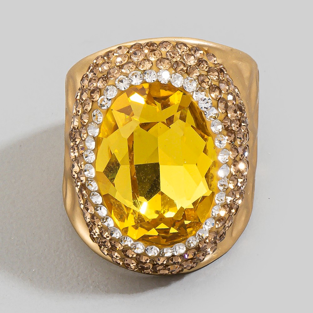 - This season's hottest ring, this ring presents a striking colorful faceted stone pave statement design. Add a dash of sophistication to your look with this versatile ring, a must-have for fashion enthusiasts. Available in BKGR, BKRR, GDGR, GDPU, GDRD, GDRR, GDWH, GDYW. This item is sold in packs of 1.