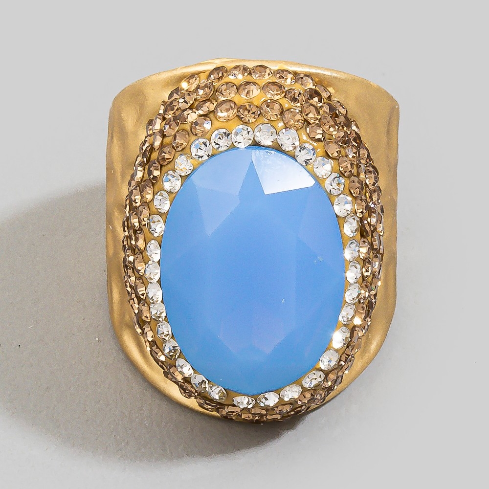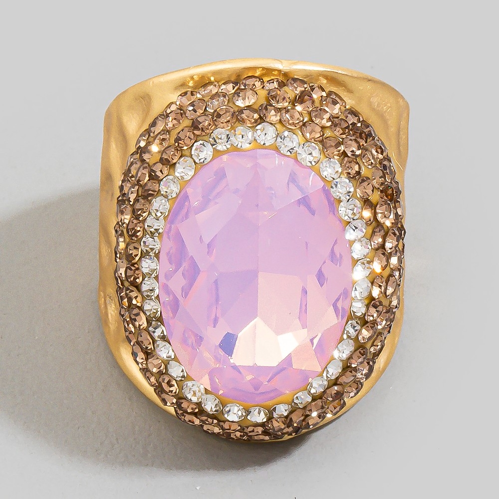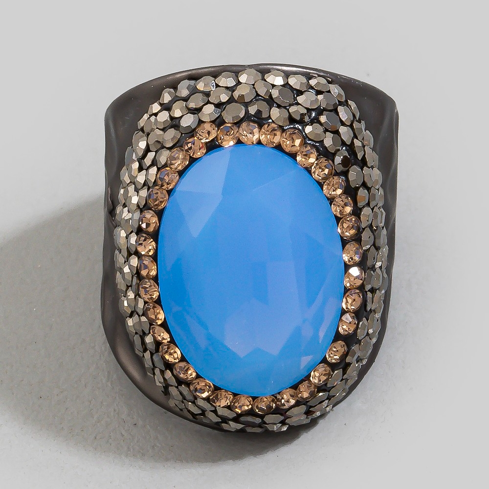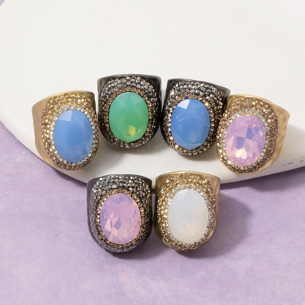 Oval Glass Stone Pave Statement Ring