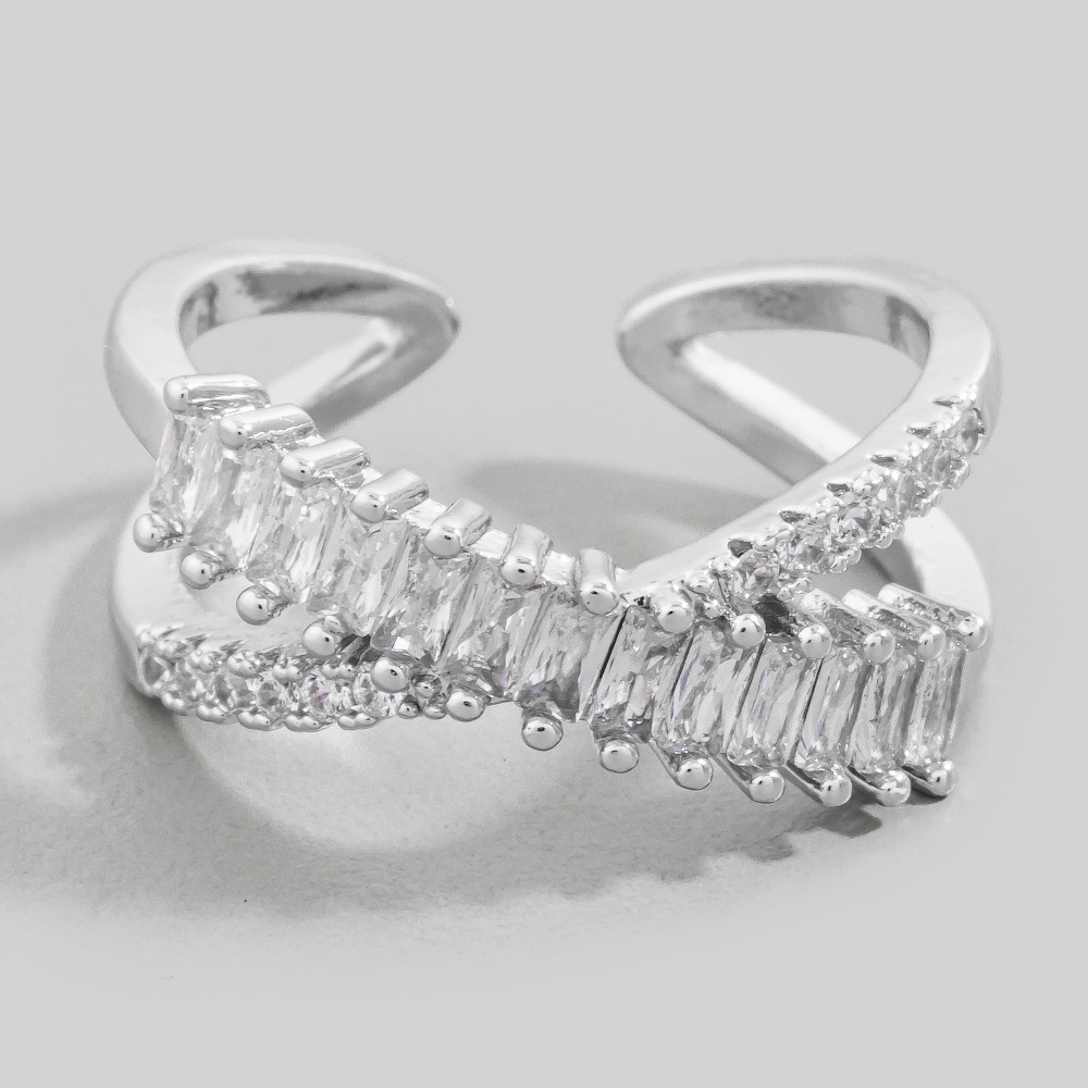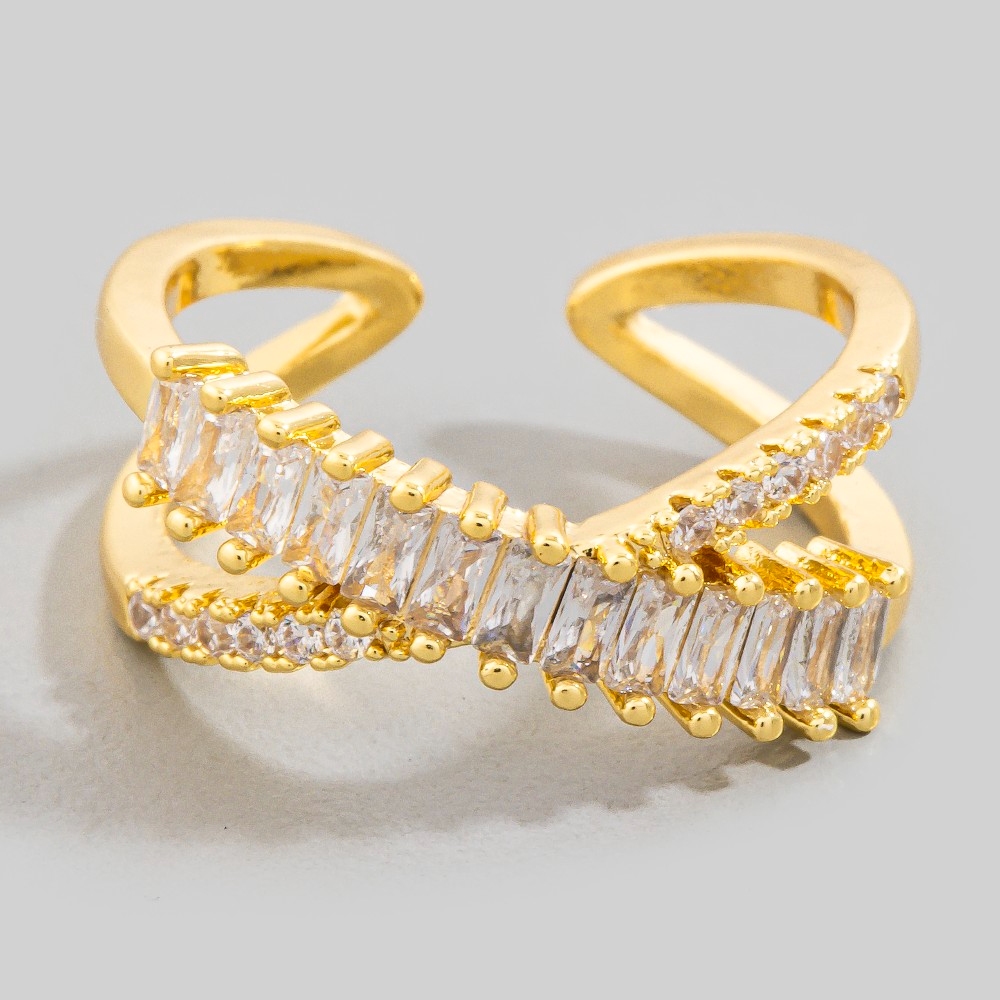 Make a statement, this ring contains a special cz baguette x adjustable design. Infuse your ensemble with a touch of sophistication using this versatile ring, a game-changer in the world of fashion. Available in G, S. This item is sold in packs of 12.