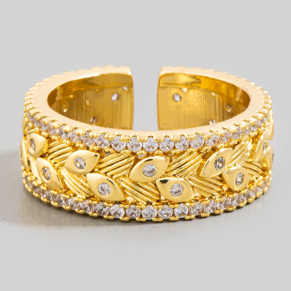 A bold and daring choice, perfect for those who want to stand out from the crowd, this ring features an exceptional cz trim evil eye detail adjustable design. Infuse your ensemble with a touch of sophistication using this versatile ring, a game-changer in the world of fashion. Available in G, S. This item is sold in packs of 12.