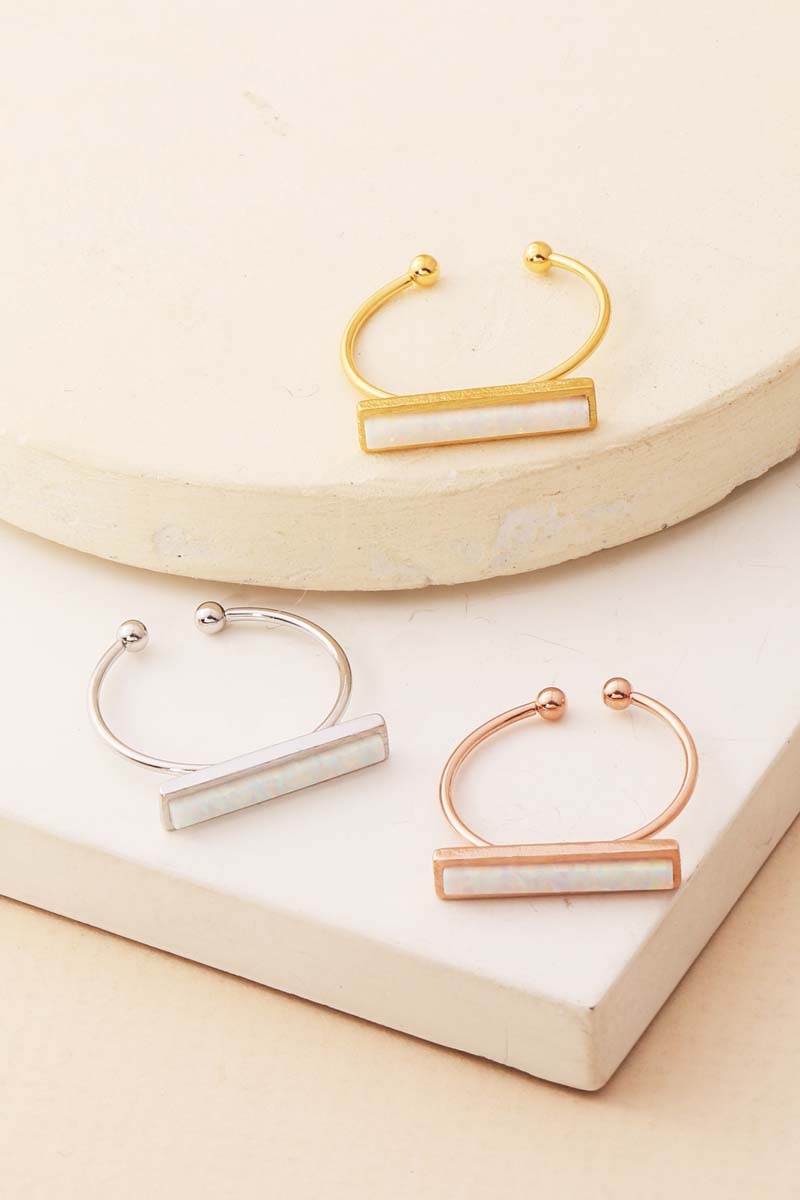 • A bold and daring choice that is sure to impress, this ring possesses a fine delicate opal bar charm ring design. This item is ideal for those who want to add some personality to their outfits without being too bold. Available in G, R and S. This item is sold in packs of 1.