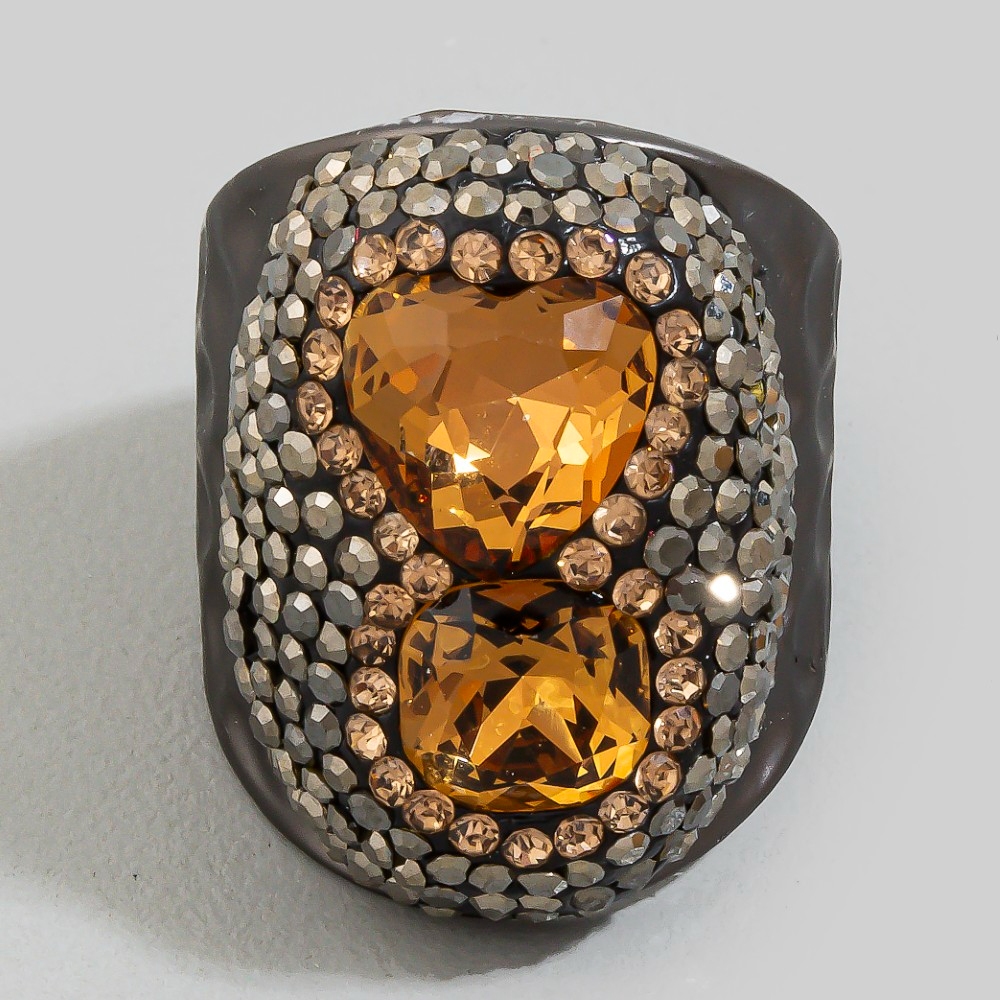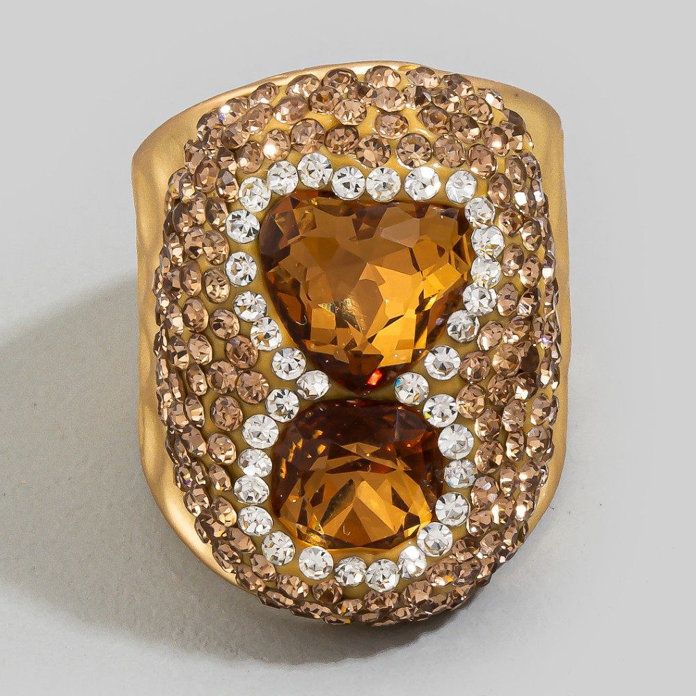 Add a touch of elegance and glamour to your look, this ring evokes a captivating faceted double crystal pave statement design. Discover a new level of fashion versatility as this ring effortlessly elevates the allure of your attire. Available in BK, GD. This item is sold in packs of 1.