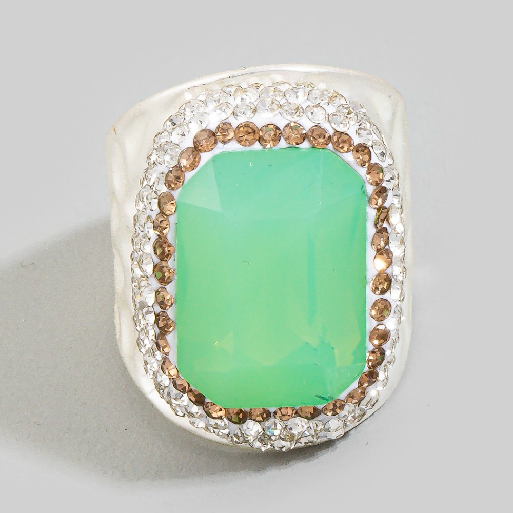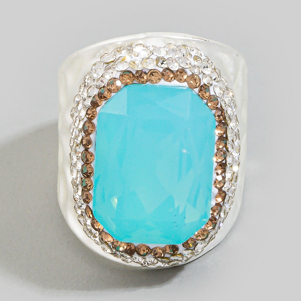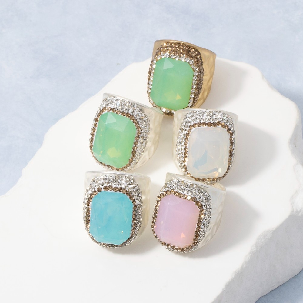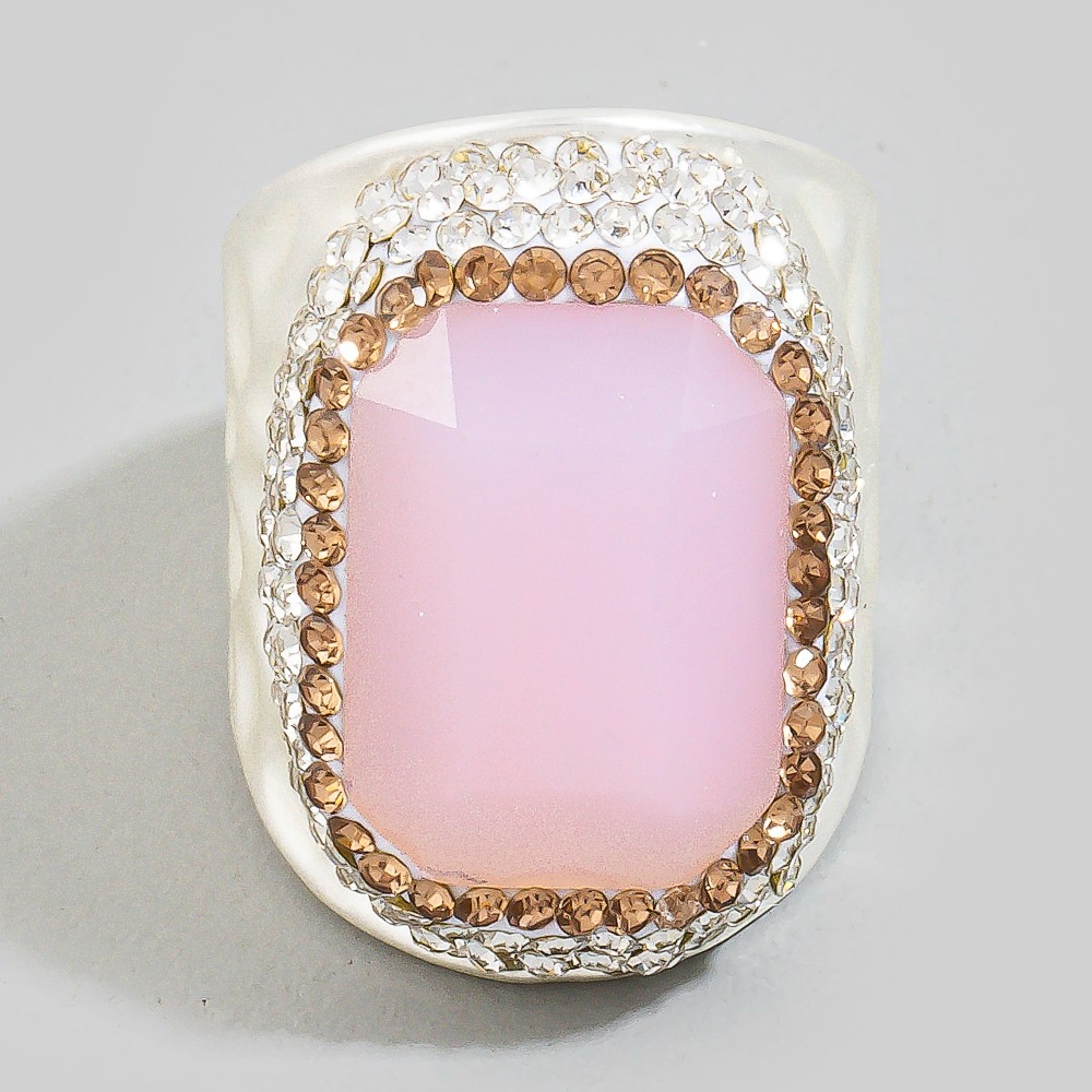 A versatile piece that can be dressed up or down, this ring shows off a distinctive faceted opal stone pave statement design. A stylish ring that's perfect for complementing any outfit you wear. Available in GDGR, SLBL, SLGR, SLPK, SLWH. This item is sold in packs of 1.