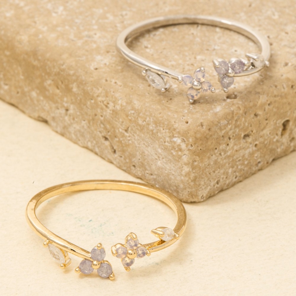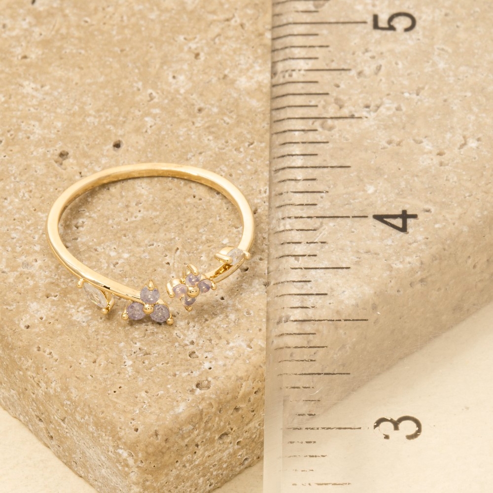 Gold Dipped Cz Flower Leaf Open Ring
