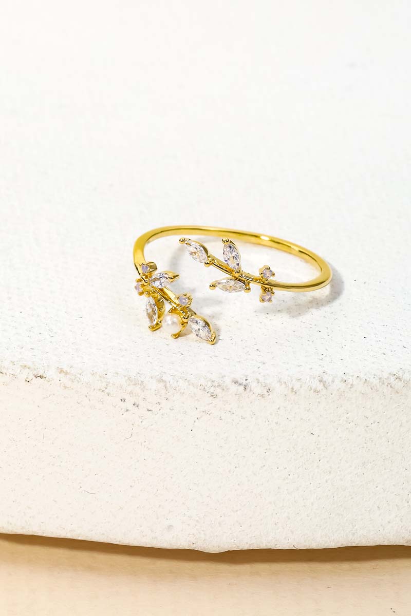 This piece is a true showstopper, this ring boasts a magnificent gold dipped dainty opal rhinestone leaf open design. A chic and sophisticated ring that's perfect for dressing up or down. Available in G, R and S. This item is sold in packs of 1.