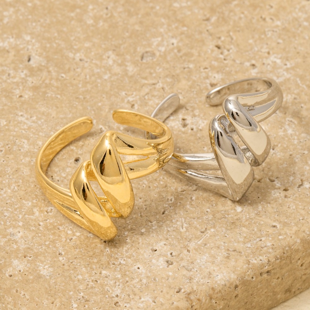 • This season's hottest ring, this ring comes with a special gold dipped intricate layered open metallic band design. A must-have ring for anyone who loves to add some flair to their outfits. Available in G, S. This item is sold in packs of 1.