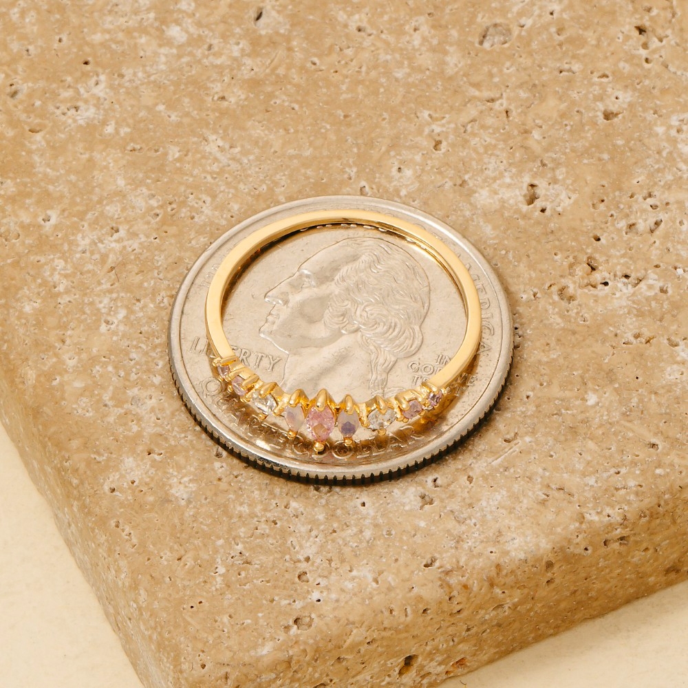 • A true work of art, this ring radiates a sleek gold dipped light pink cubic zirconia design. Perfect for dressing up or down, this versatile ring adds a touch of sophistication to any look. Available in G. This item is sold in packs of 1.