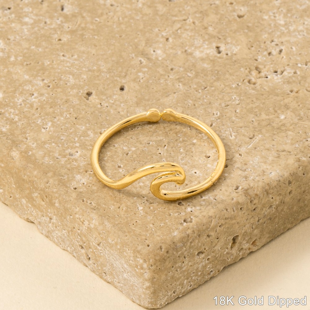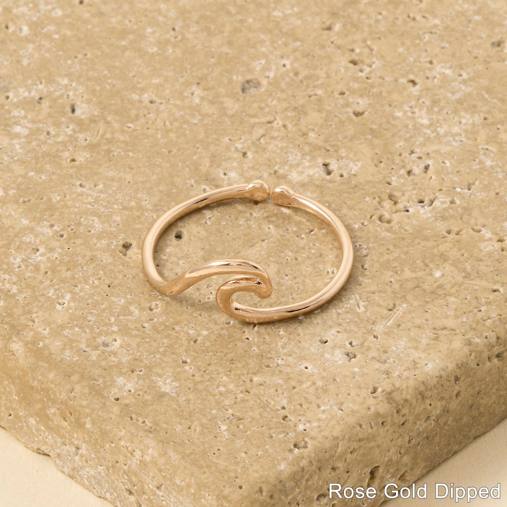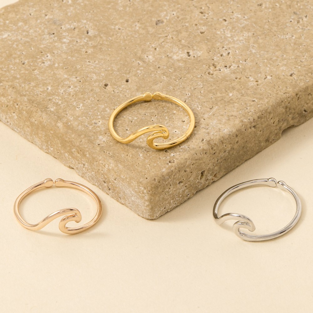 • Perfect for any fashion-forward individual, this ring brings a one-of-a-kind gold dipped wave cutout adjustable design. A must-have ring for anyone who loves to add some flair to their outfits. Available in G, R, S. This item is sold in packs of 1.