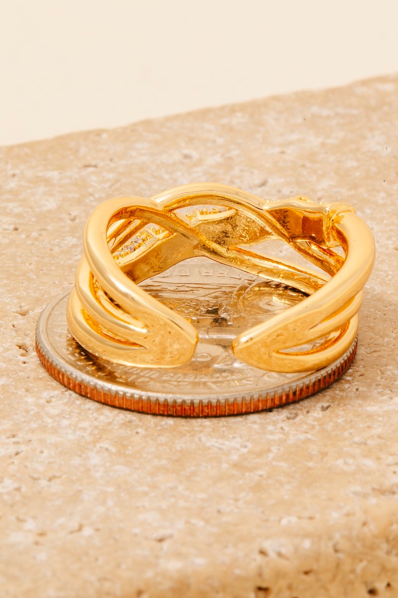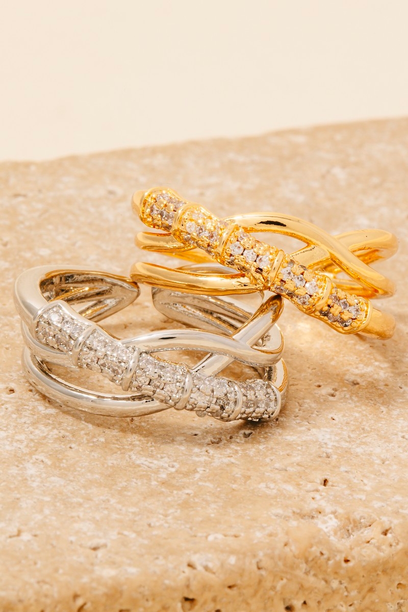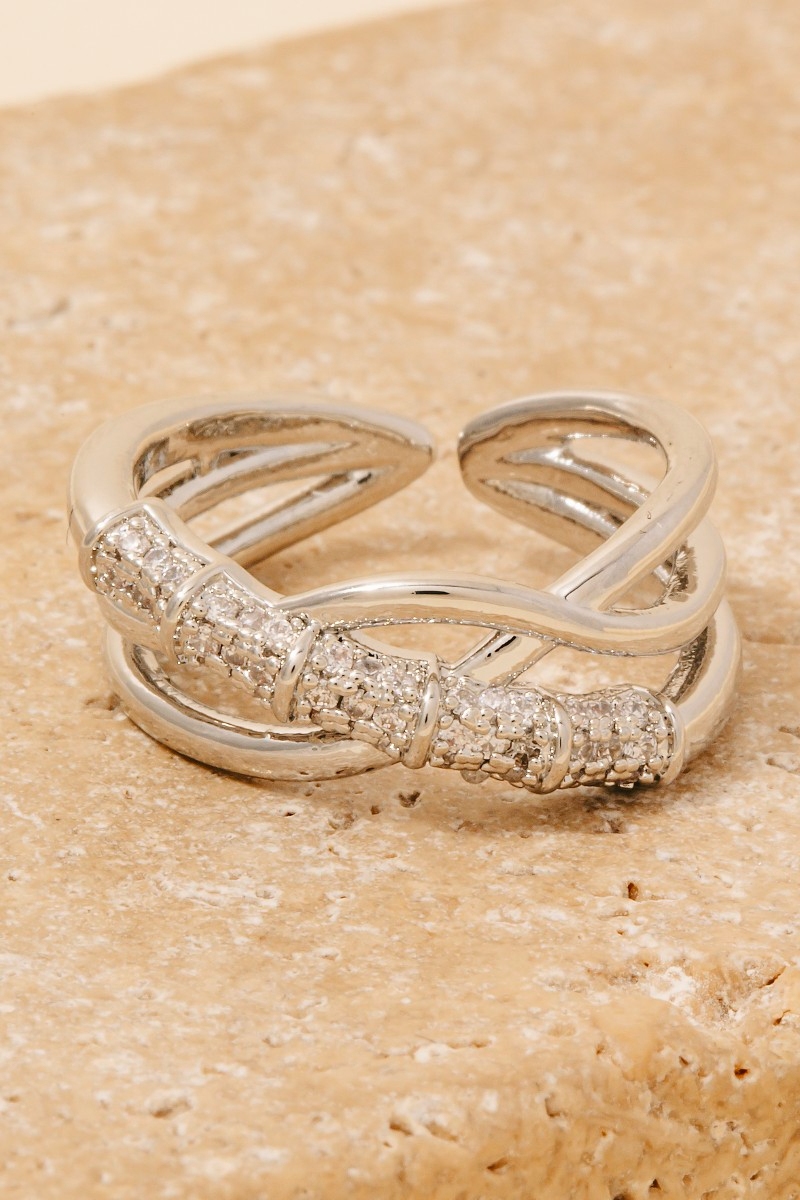 Perfect for any occasion, from casual to formal, this ring comes with a special intricate layered pave row open band design. A chic and sophisticated ring that's perfect for dressing up or down. Available in G, S. This item is sold in packs of 1.
