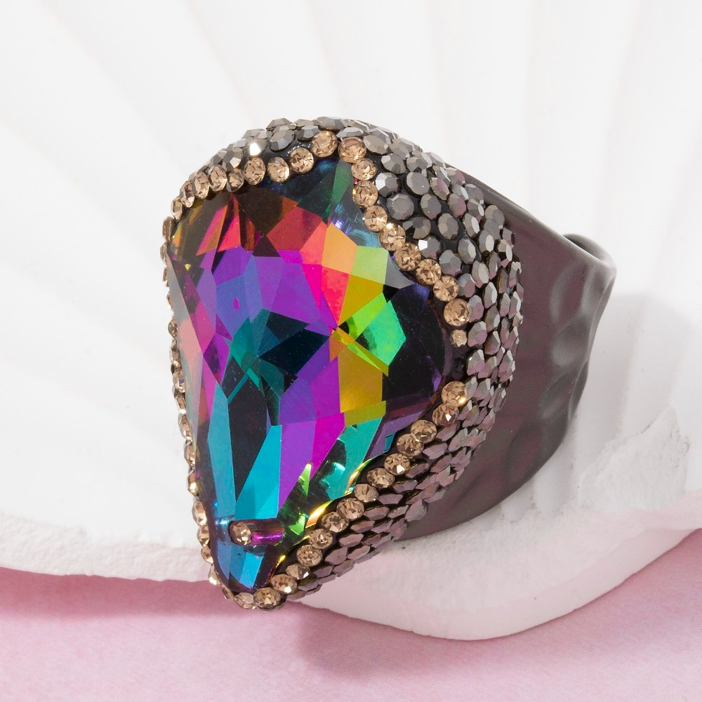 • Stay on-trend and stand out from the crowd, this ring comes with a special iridescent glass stone statement design. A chic and sophisticated ring that's perfect for dressing up or down. This item is sold in packs of 1.