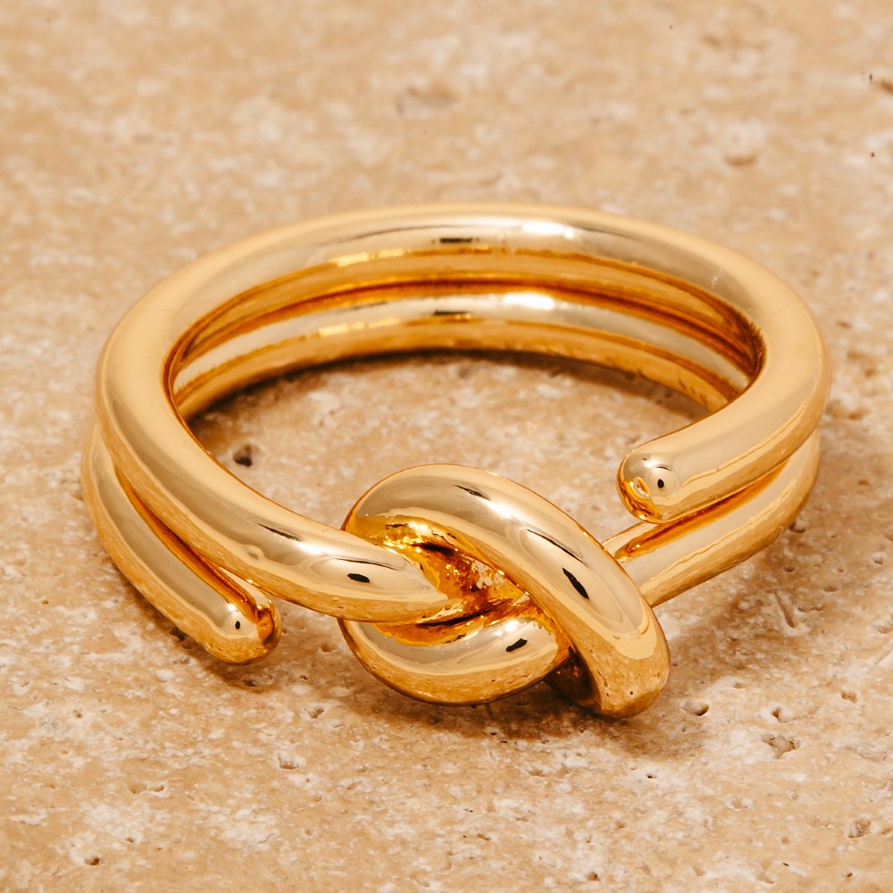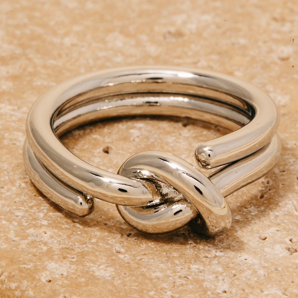• This piece is perfect for those who want to showcase their unique style, this ring possesses a fine layered knotted metallic band design. This ring is a great way to add some flair to your outfit without going over the top. This item is sold in packs of 1.