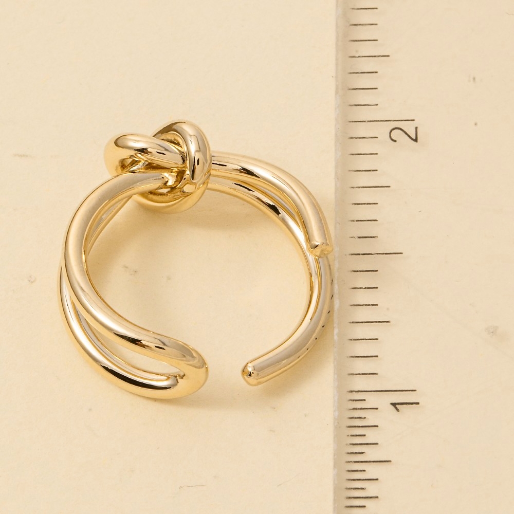 Sleek and modern, this ring adds a distinctive layered knotted open band design. This item is ideal for those who want to add some personality to their outfits without being too bold. Available in G. This item is sold in packs of 1.