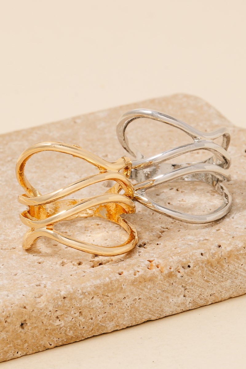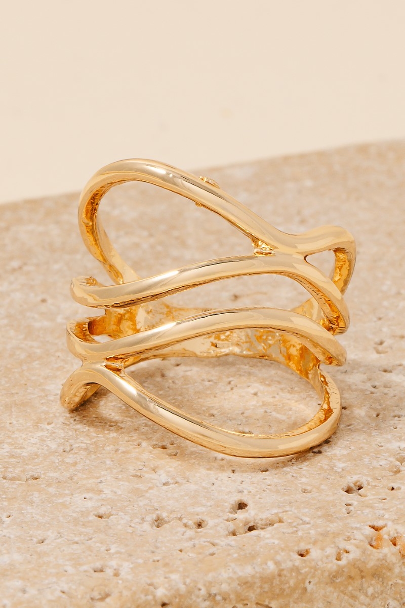A bold and daring choice, perfect for those who want to stand out from the crowd, this ring includes a stunning layered multi strand open band design. Elevate your fashion ensemble effortlessly with this versatile ring, a stylish choice for the modern trendsetter. Available in G and S. This item is sold in packs of 1.