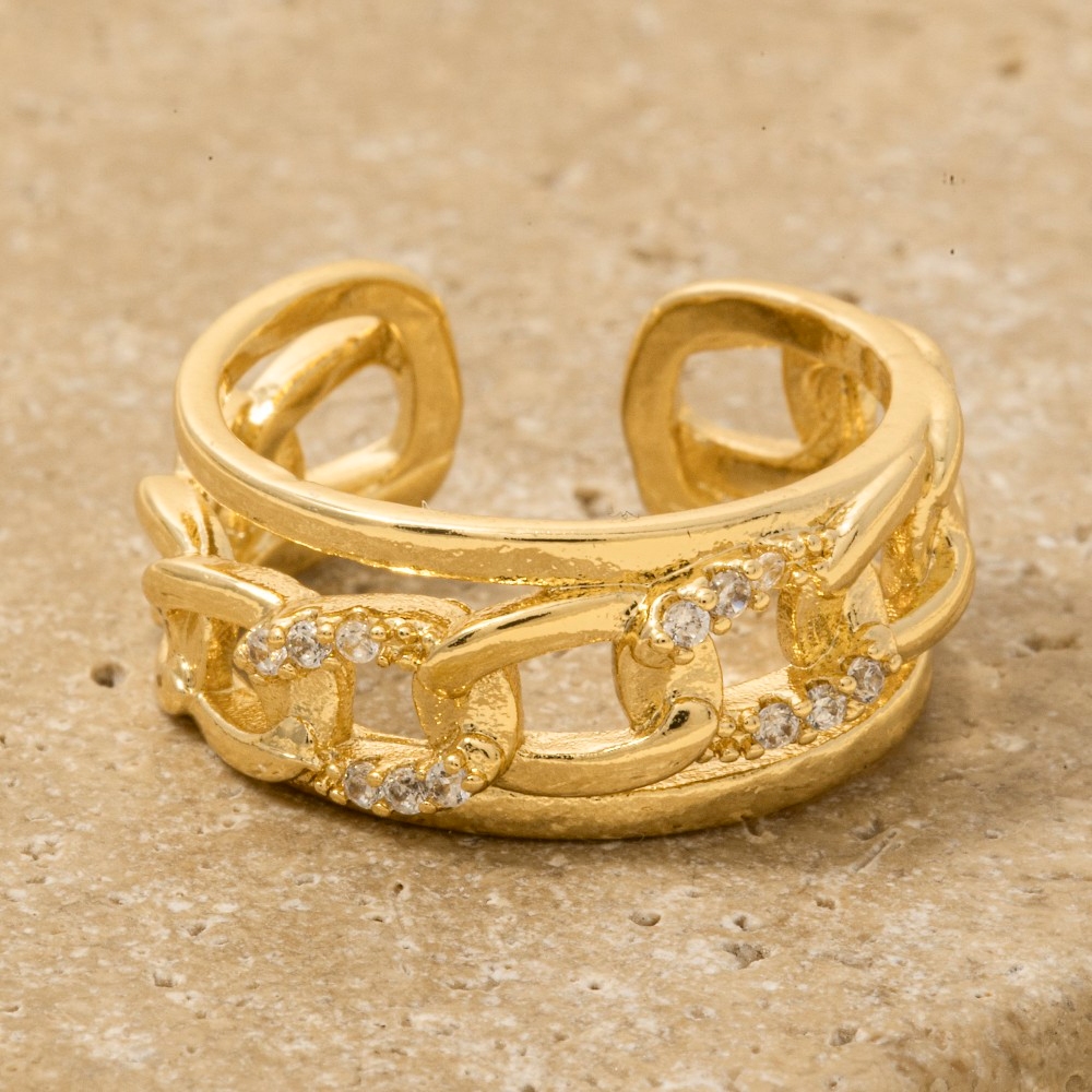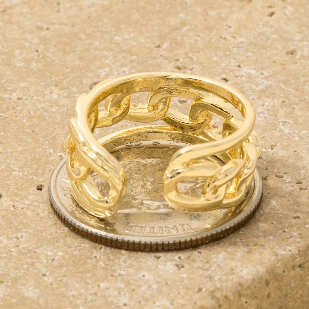 • This piece is both timeless and on-trend, this ring flaunts a luxurious ornate chain link open design. Perfect for any occasion, this versatile ring will enhance any outfit you wear. Available in G, LG, S. This item is sold in packs of 1.