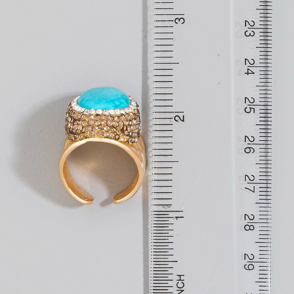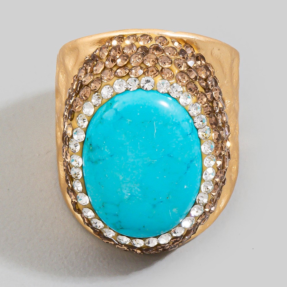 - Stay on-trend and stand out from the crowd, this ring incorporates a remarkable oval turquoise stone pave statement design. A stylish ring that's perfect for complementing any outfit you wear. Available in GD, SL. This item is sold in packs of 1.
