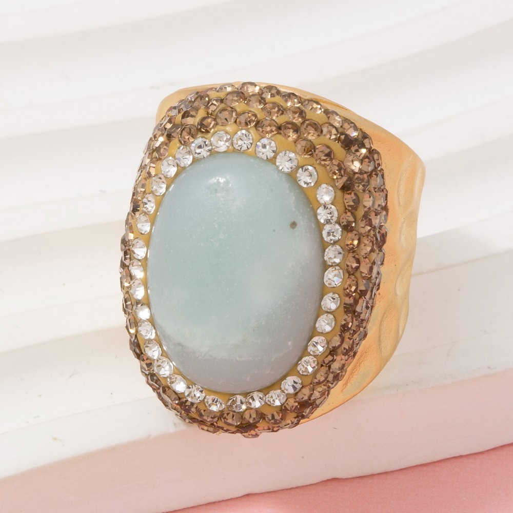 - Effortlessly chic and always on-trend, this ring introduces an exceptional pave amazonite stone statement design. This item is ideal for those who want to add some personality to their outfits without being too bold. This item is sold in packs of 1.
