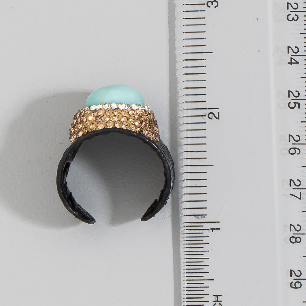 - The perfect way to complete any outfit, this ring showcases an alluring pave amazonite stone with leather band statement design. Perfect for adding a touch of glamour and sophistication to any outfit, this ring is a must-have. This item is sold in packs of 1.