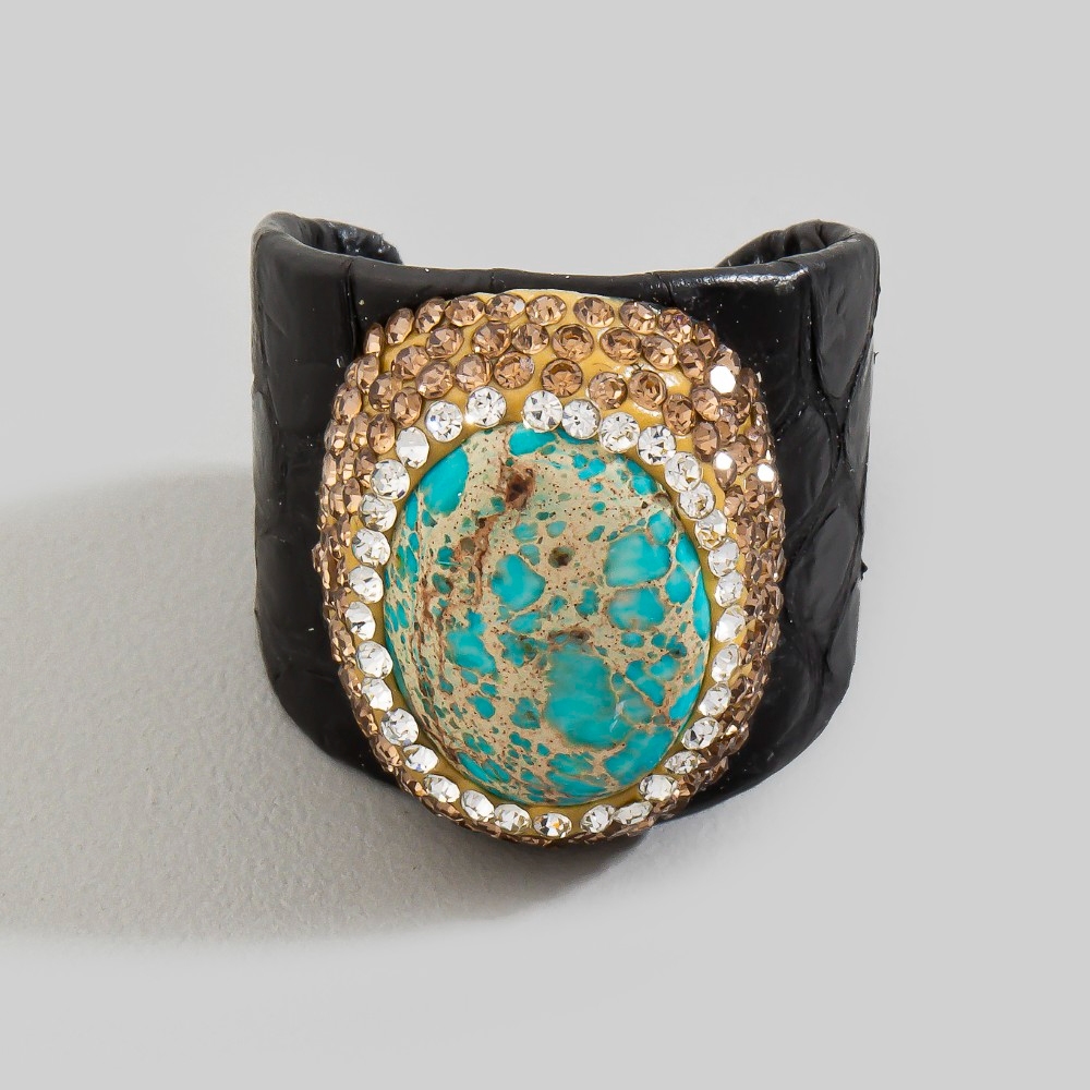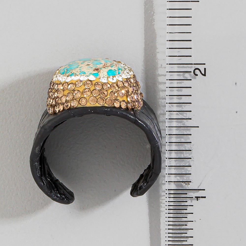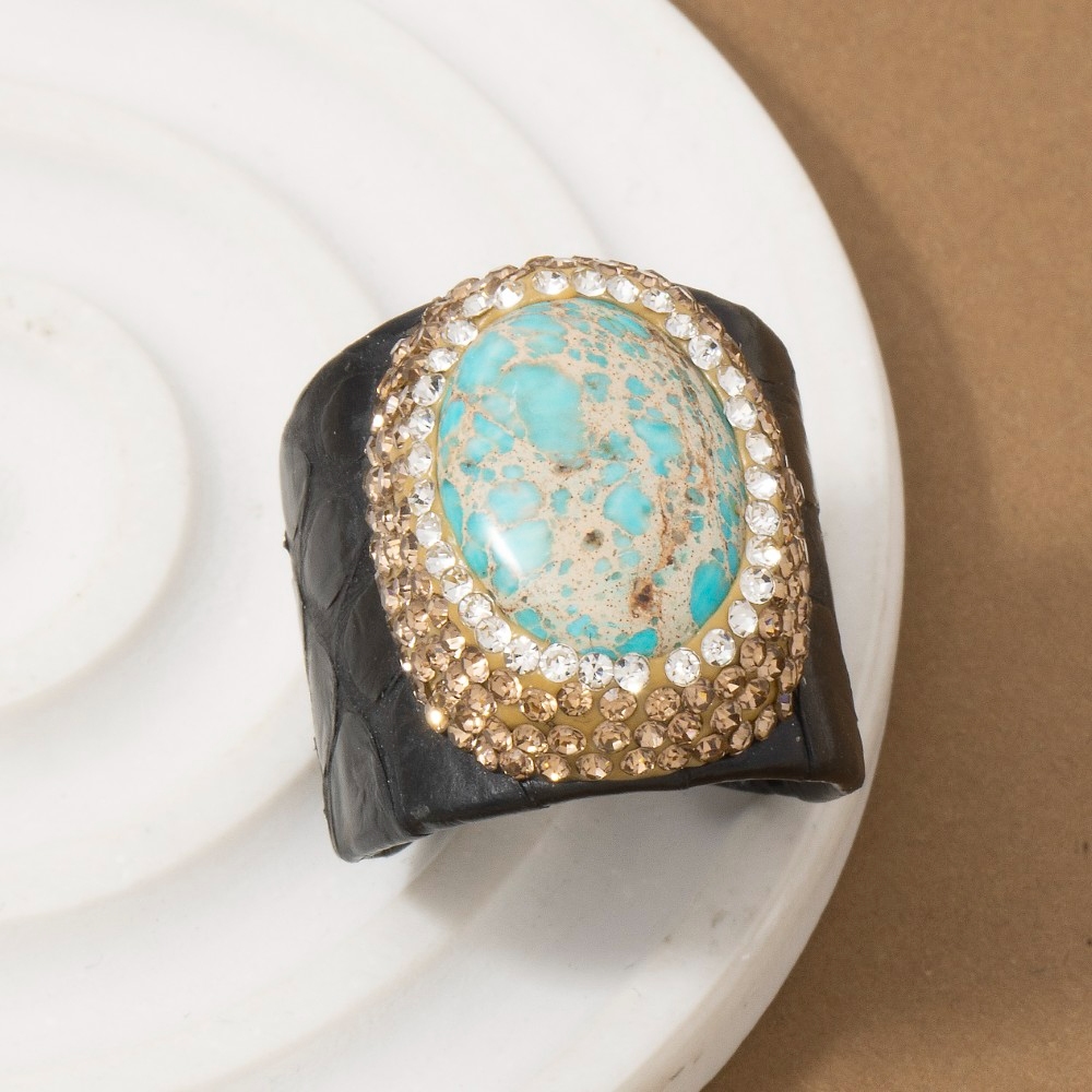 Pave Faceted Crystal Stone Leather Band Statement Ring