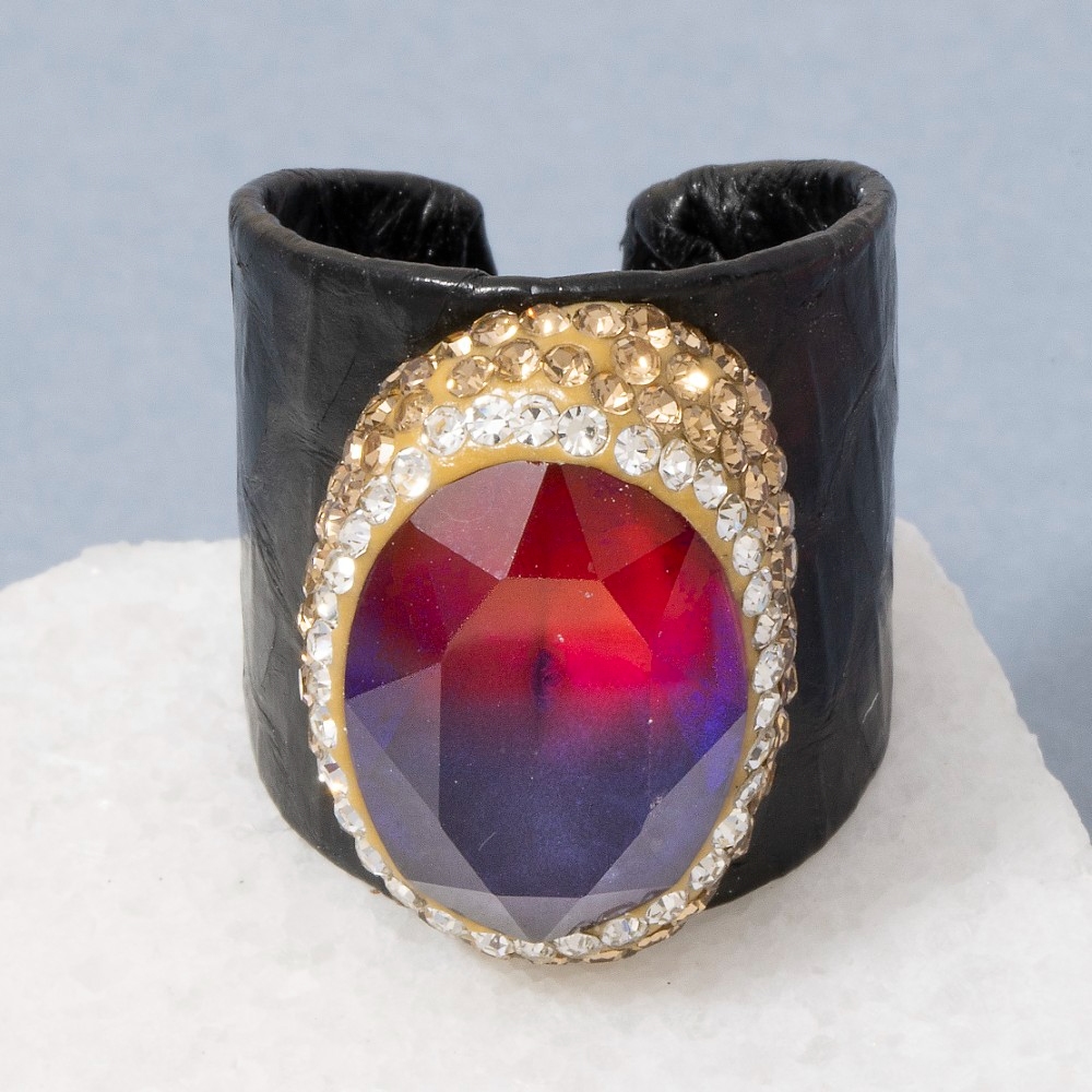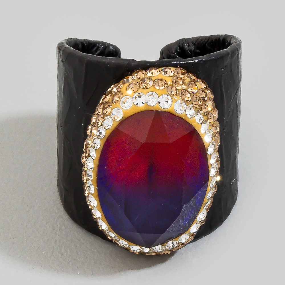 - This piece is both elegant and versatile, this ring brings a one-of-a-kind pave faceted glass stone with leather band statement design. Take your style to the next level by incorporating this versatile ring, a key element in achieving a polished look. This item is sold in packs of 1.