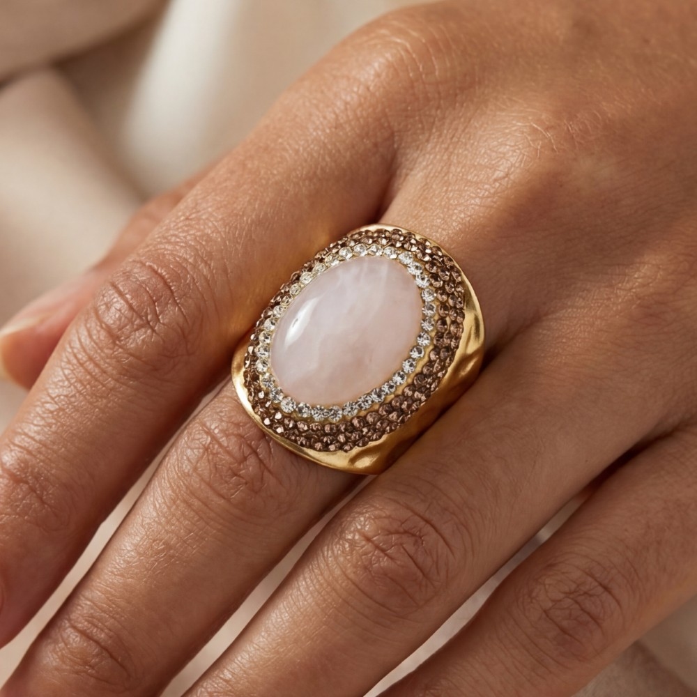 - Perfect for any fashion-forward individual, this ring embodies a sophisticated pave rose quartz stone statement design. A stylish ring that's perfect for complementing your favorite outfit. This item is sold in packs of 1.