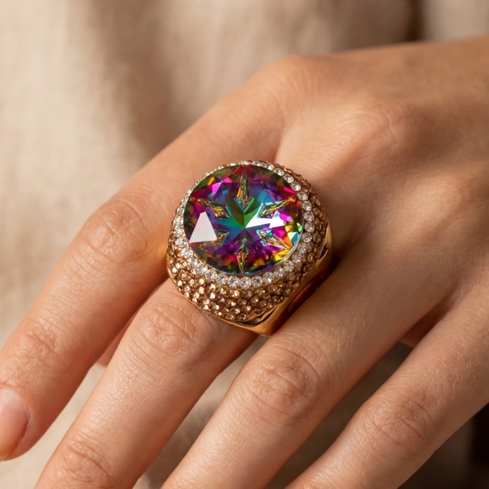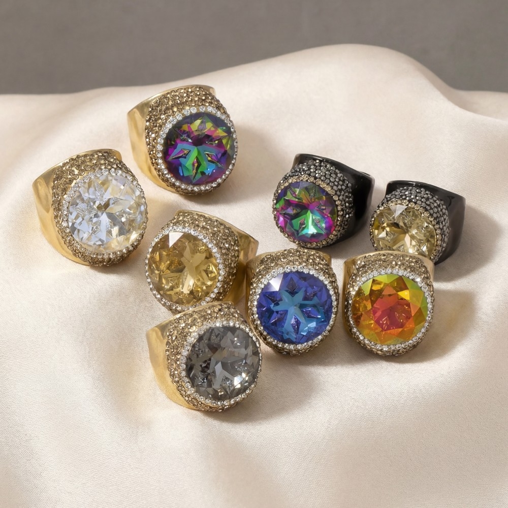 Faceted Crystal Stone Statement Ring
