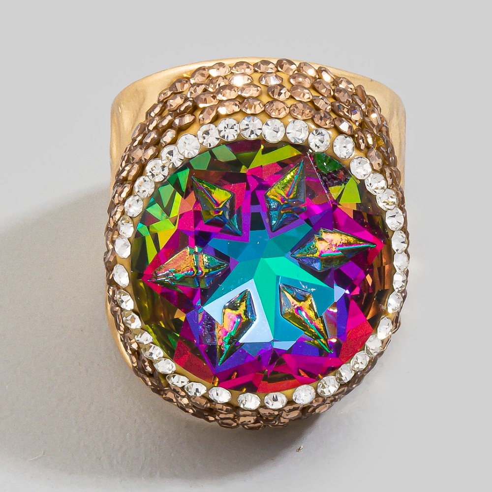 Faceted Crystal Star Pave Statement Ring
