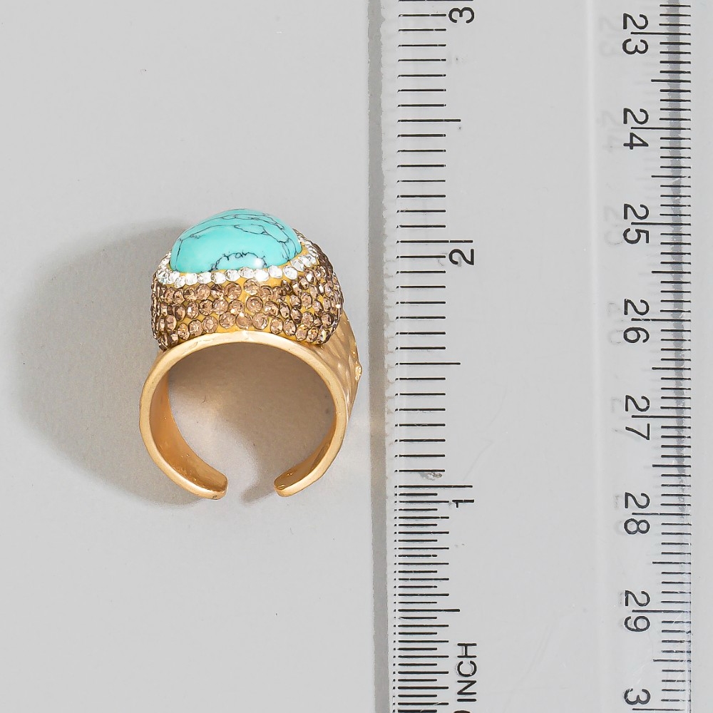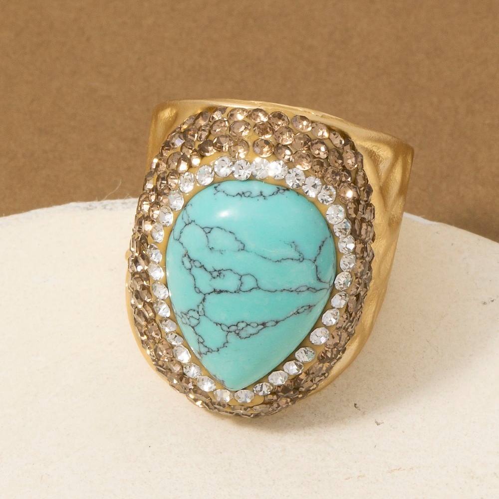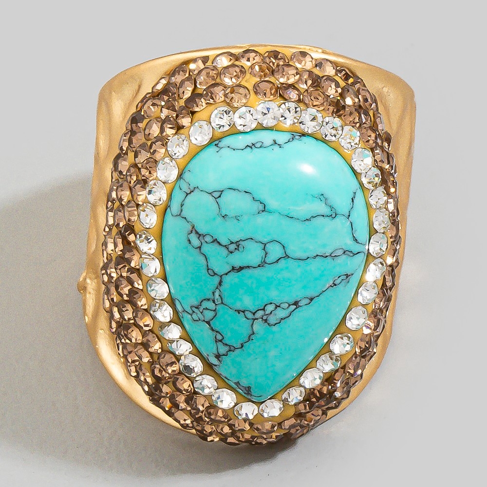 The perfect way to elevate any outfit, this ring showcases a breathtaking pave turquoise stone pave gold statement design. Redefine your fashion identity with this versatile ring, a timeless piece that complements any wardrobe. This item is sold in packs of 1.