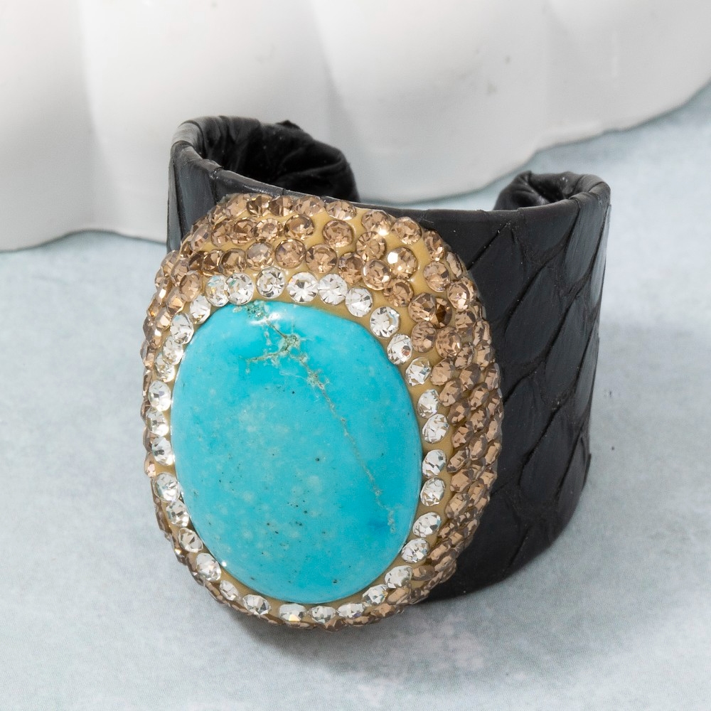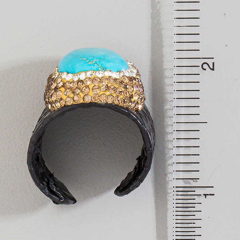- A must-have for any fashion-forward individual, this ring incorporates a flawless pave turquoise stone with leather band statement design. Unlock endless styling possibilities with this versatile ring, creating a signature look that speaks volumes. This item is sold in packs of 1.