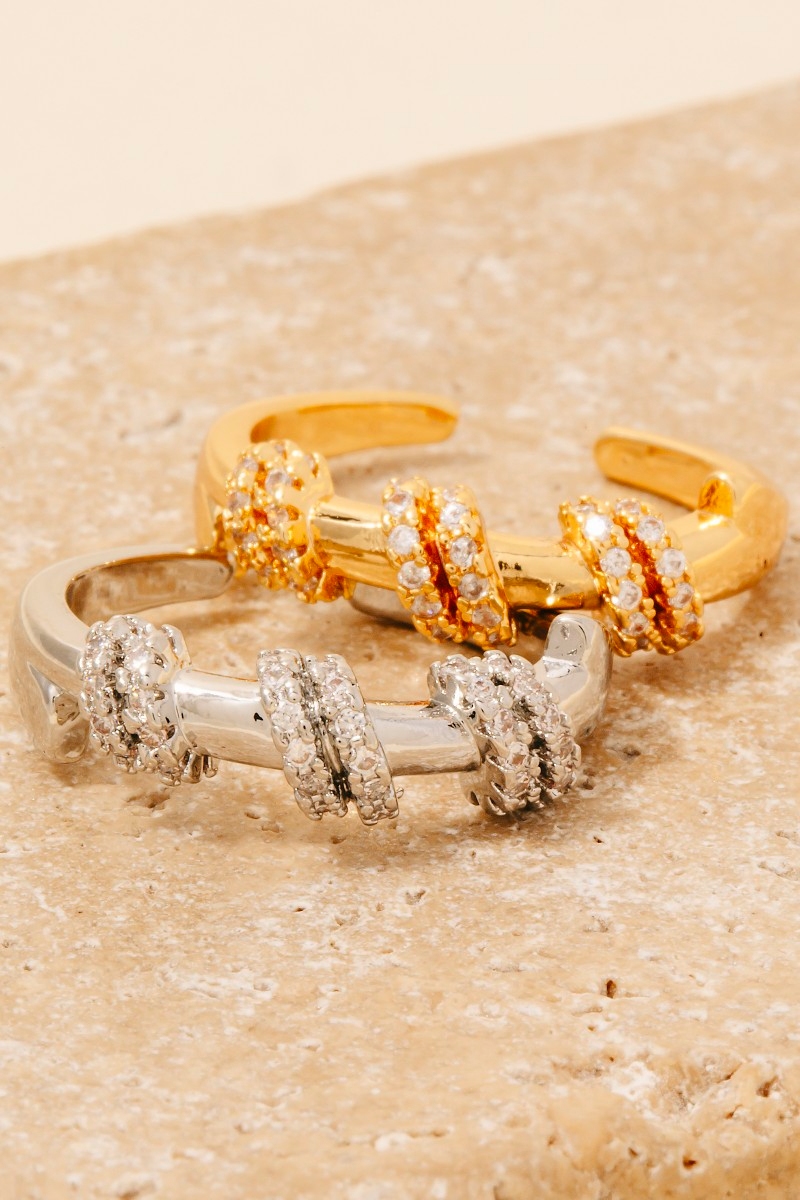 • Uniquely designed and endlessly stylish, this ring comes with a special pave wrap simple open band design. A chic and sophisticated ring that's perfect for dressing up or down. Available in G, S. This item is sold in packs of 1.