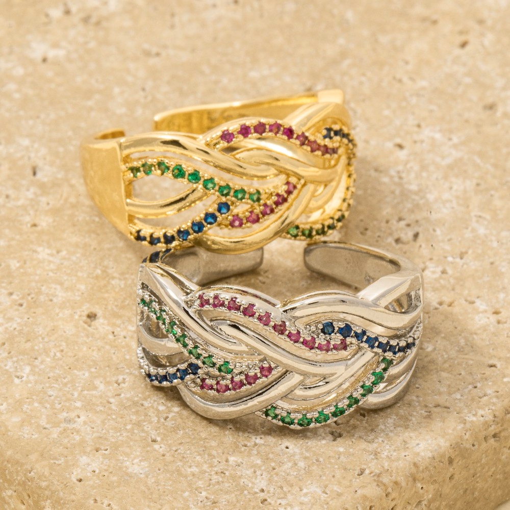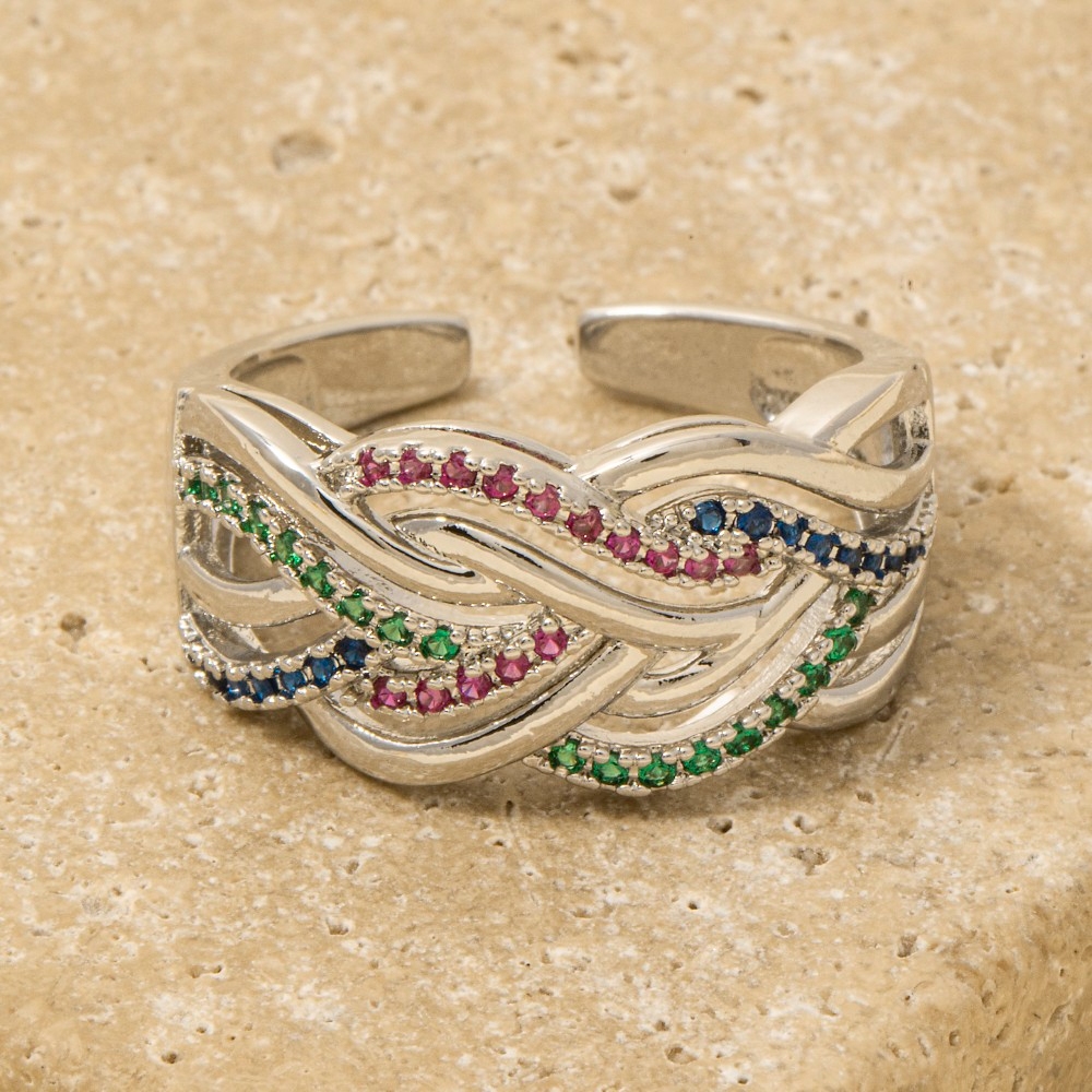 • A classic design with a contemporary twist, this ring exudes a refined rhinestone braided band design. Redefine your fashion identity with this versatile ring, a timeless piece that complements any wardrobe. Available in G, S. This item is sold in packs of 1.