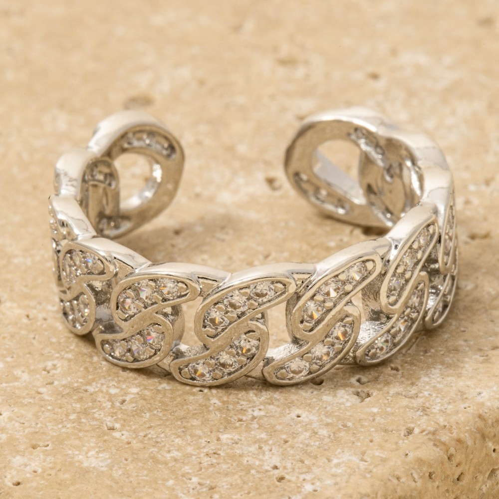 • Elevate any look, this ring incorporates a remarkable rhinestone metallic chain design. Unlock endless styling possibilities with this versatile ring, creating a signature look that speaks volumes. Available in G, S. This item is sold in packs of 1.