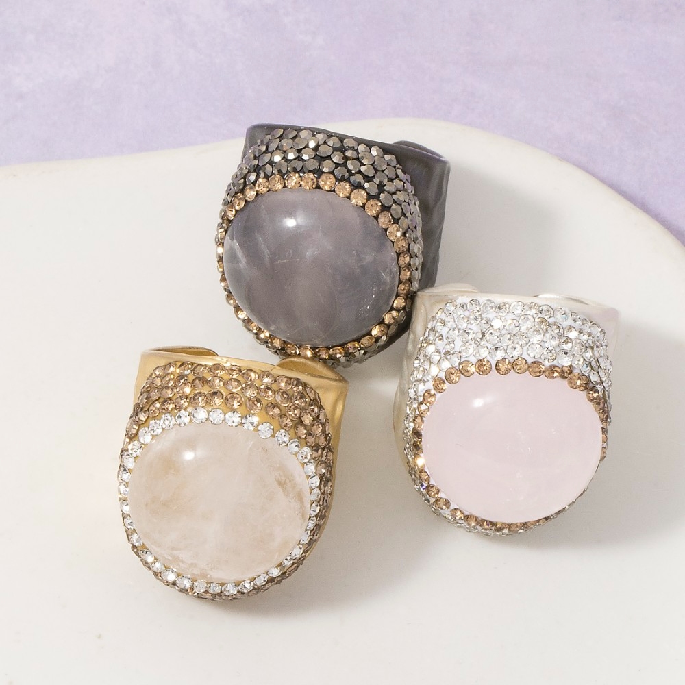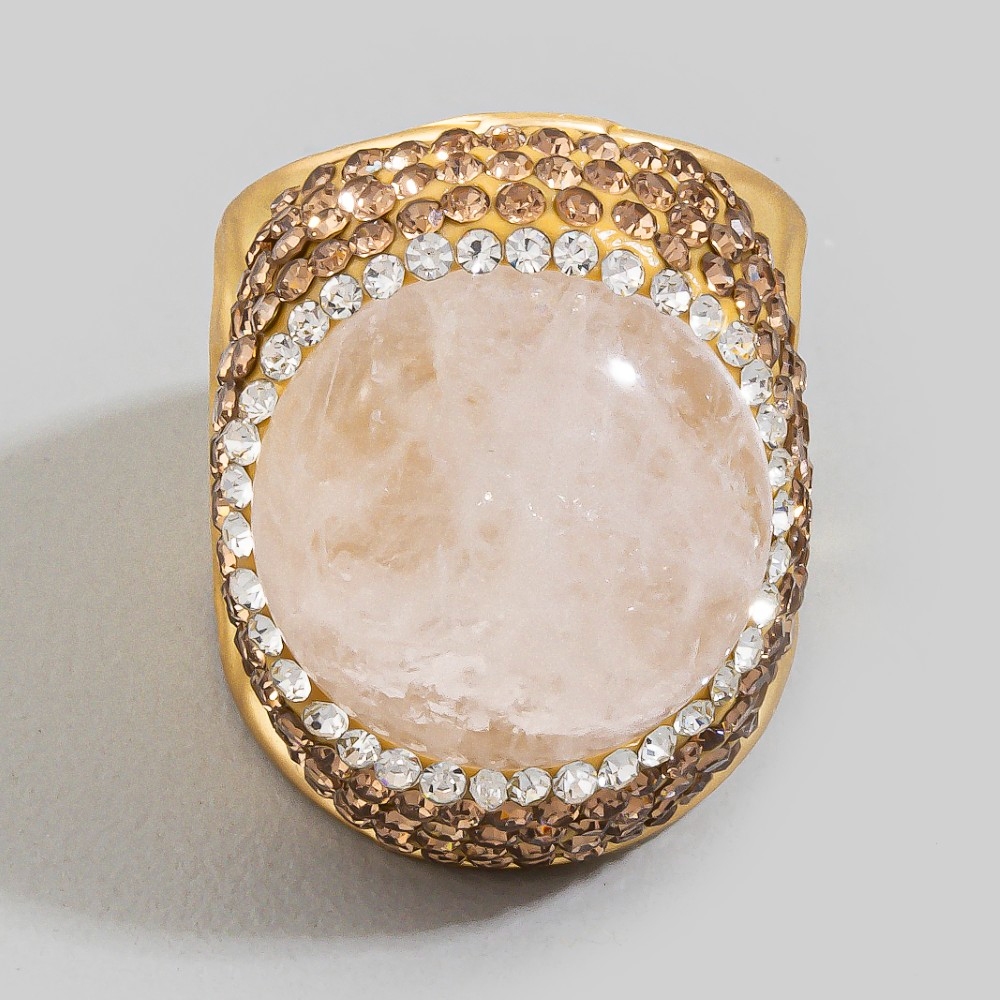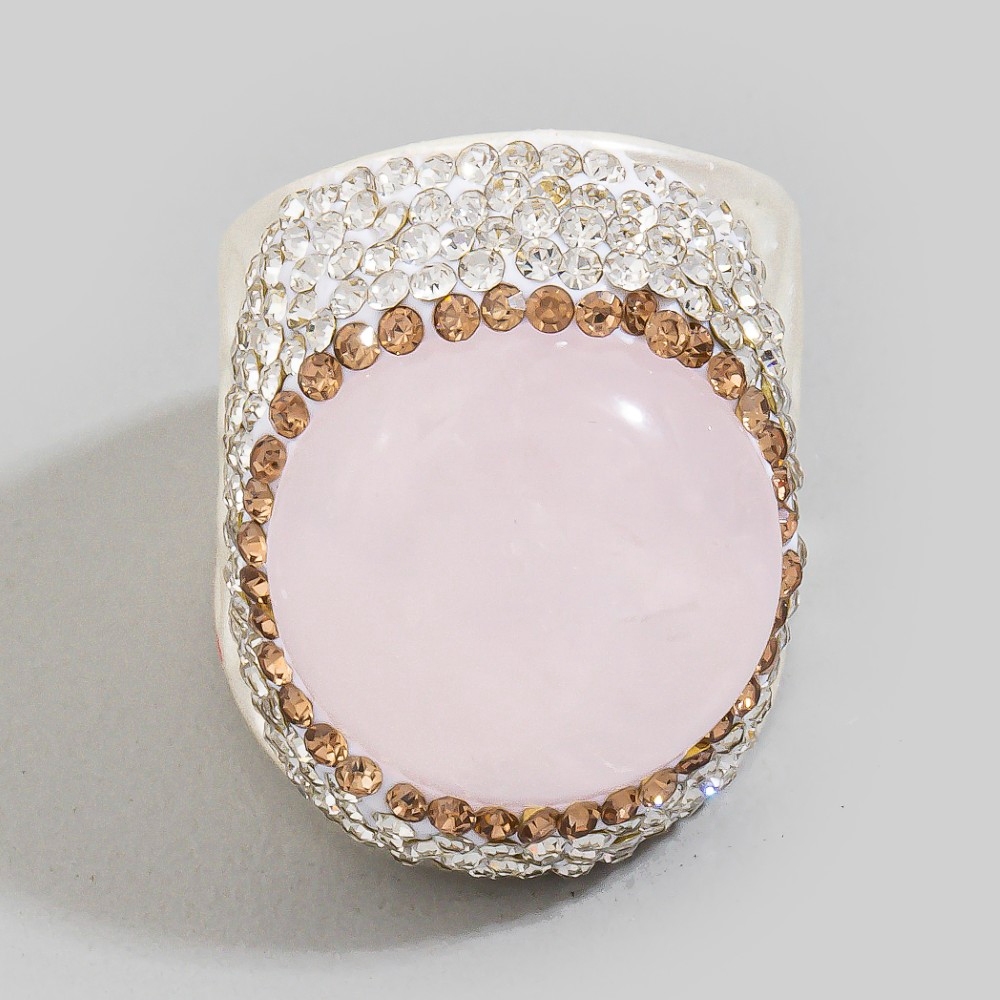 Stay on-trend and ahead of the fashion curve, this ring embodies a sophisticated rose quartz stone pave statement design. Elevate your everyday style with this versatile ring, a simple yet impactful addition to your fashion repertoire. This item is sold in packs of 1.
