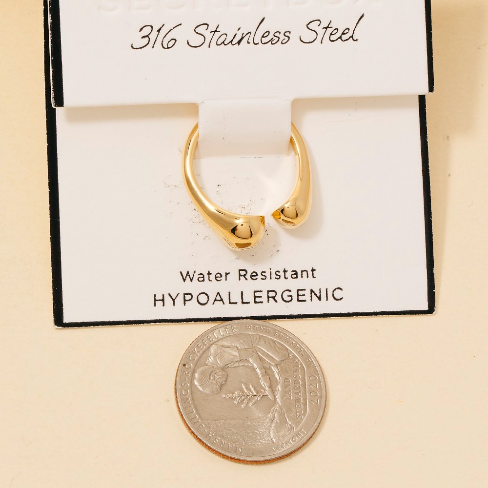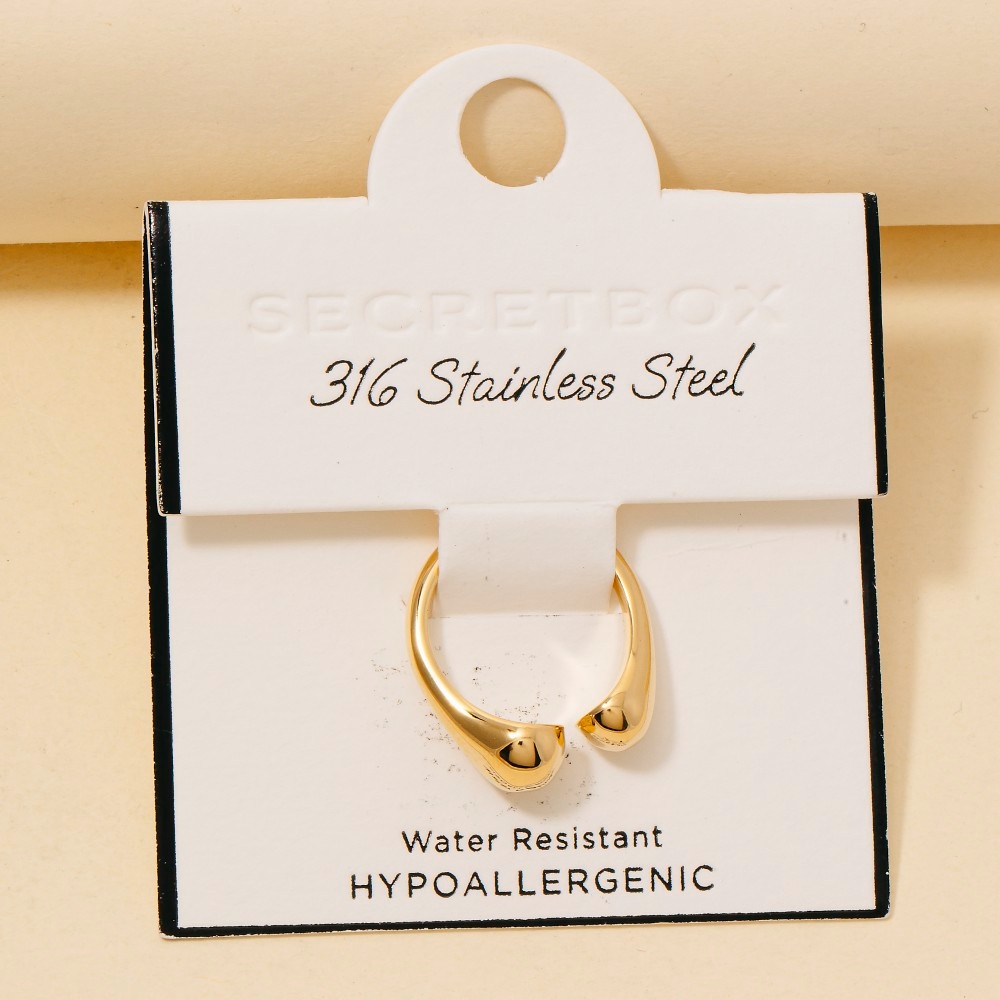 Add some edge to your look, this ring incorporates a remarkable secret box stainless steel tear wrap around open band design. This item is perfect for anyone who loves to accessorize and add some personality to their outfits. Available in GD, RH. This item is sold in packs of 1.