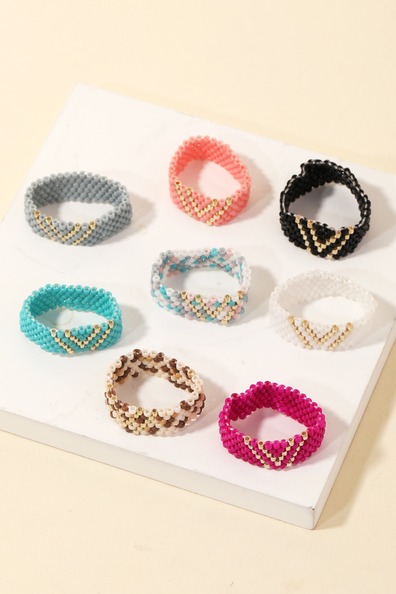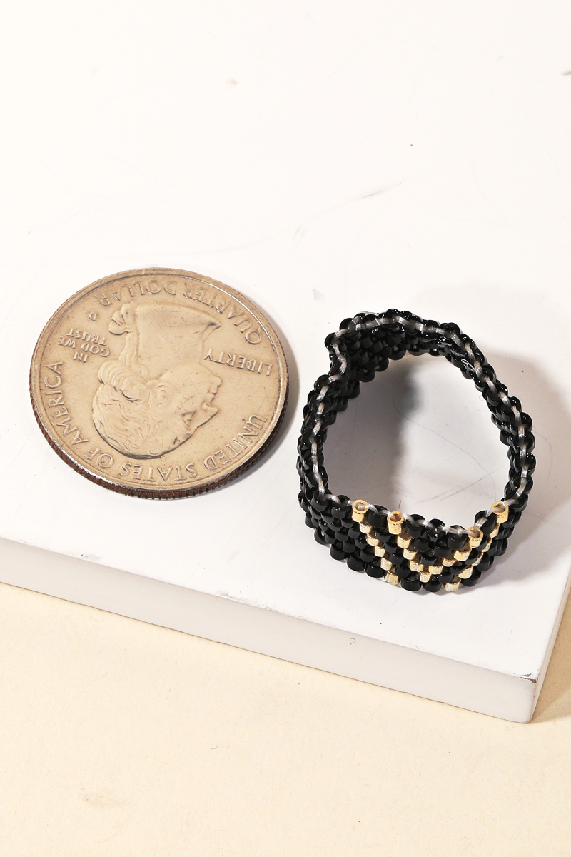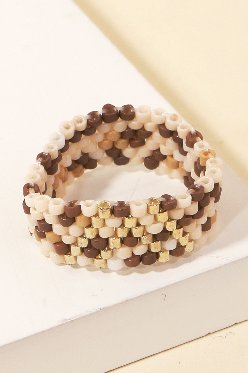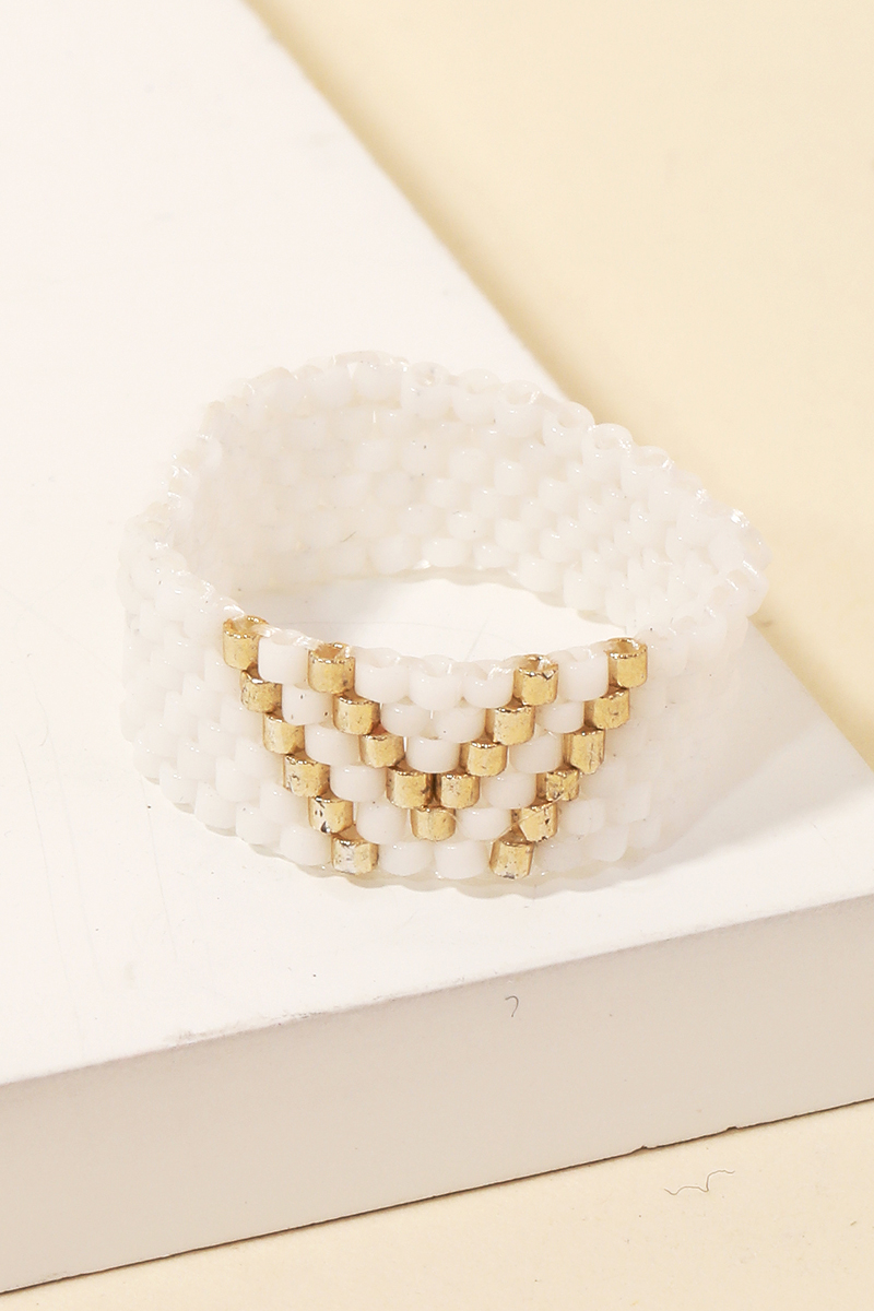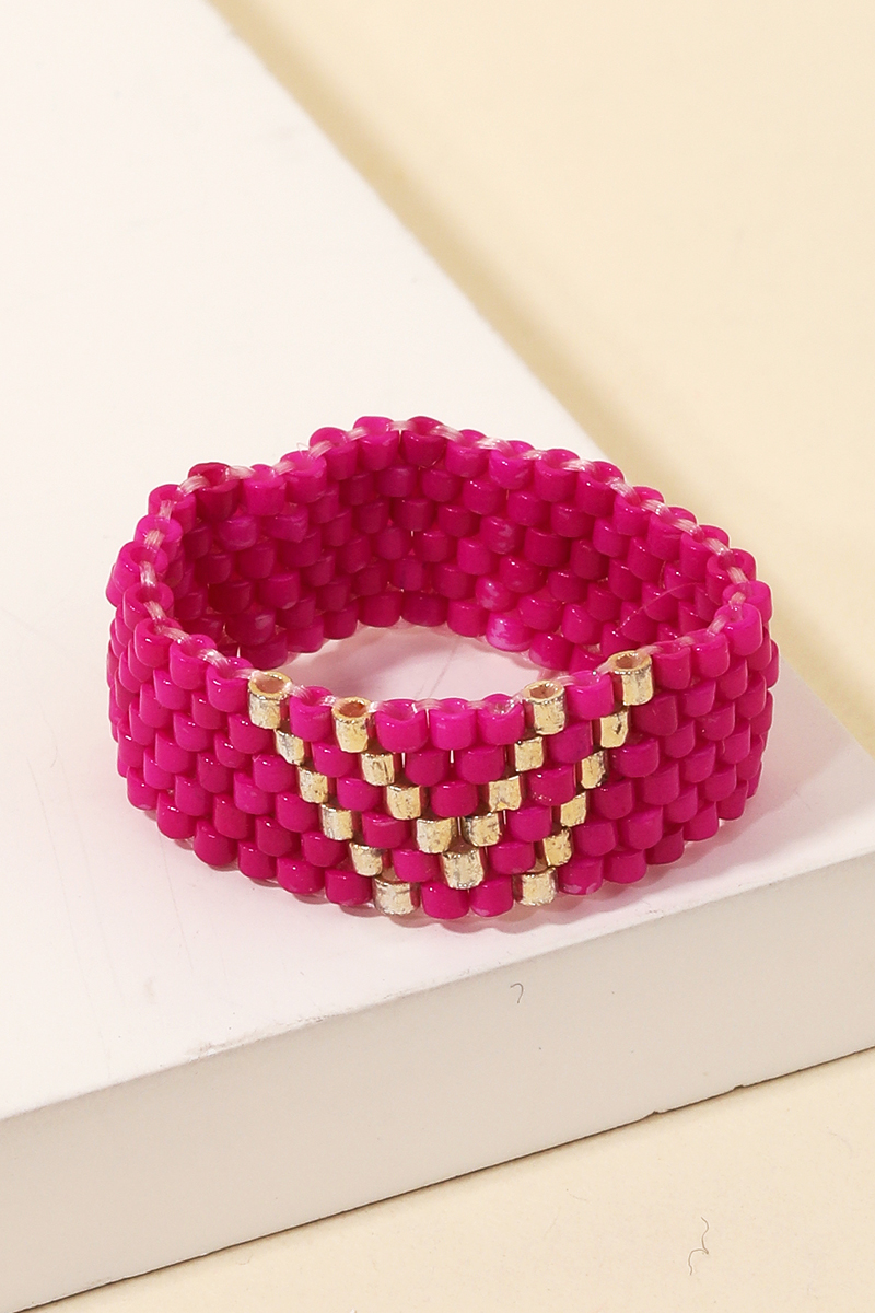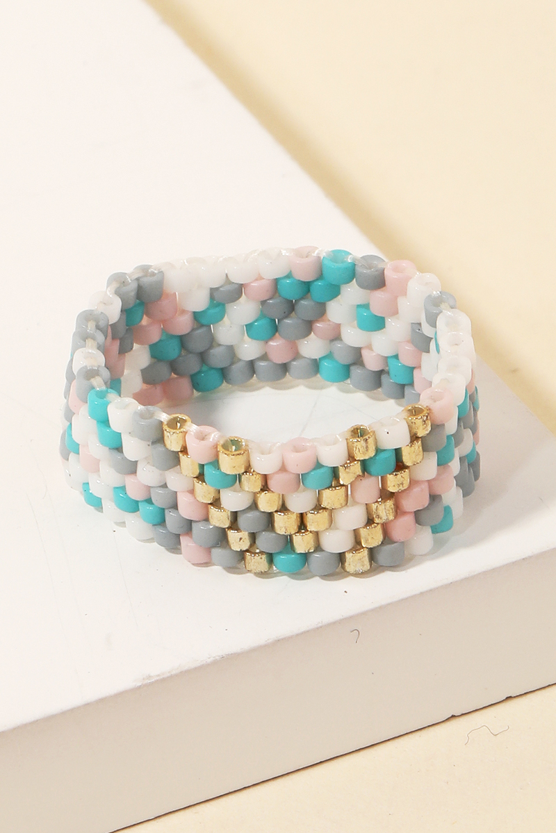 • Perfect for any fashion-forward individual, this ring displays a unique seed beaded stretch ring design. This item is a great way to add some texture and dimension to any outfit. Available in BEIGEMULTI, BLACK, FUSCHIA, LGRY, LMULTI, PINK, TQ and WHITE.
