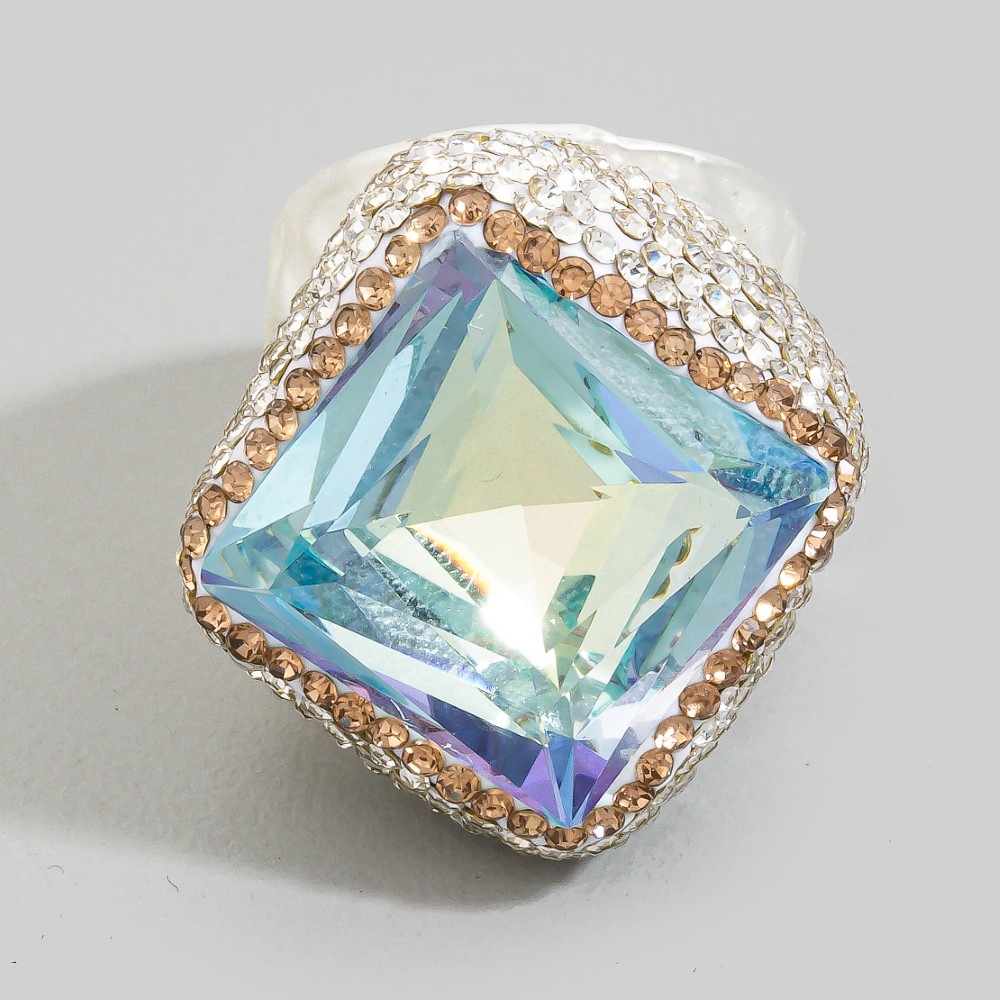This season's must-have ring, this ring features a distinct square crystal stone pave statement design. Add a touch of glamour to your wardrobe with this versatile ring, perfect for enhancing the elegance of any look. This item is sold in packs of 1.