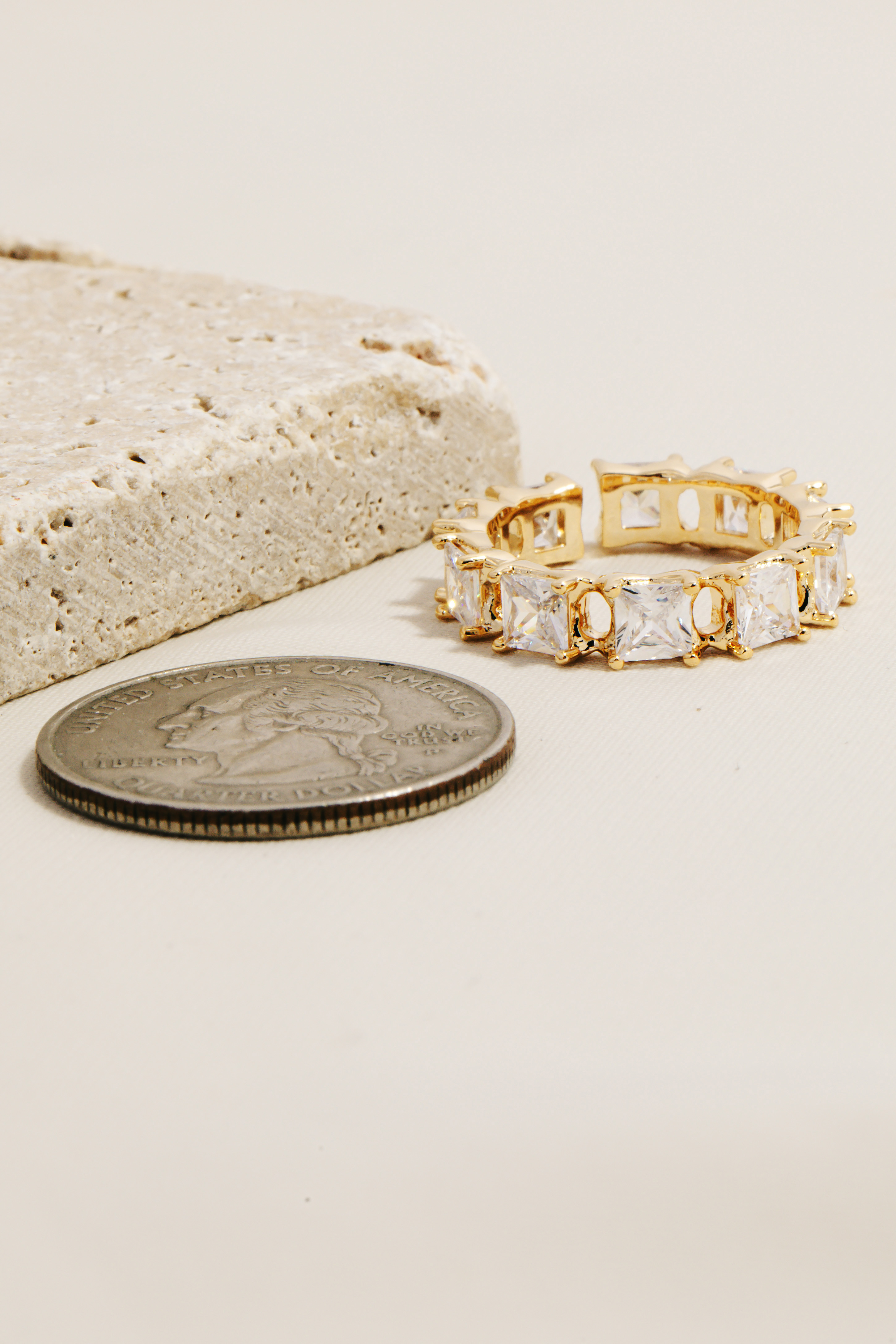 • A timeless piece that will never go out of style, this ring flaunts a luxurious square rhinestone studs metallic band design. Perfect for adding a pop of color or texture to any outfit, this ring is a must-have. Available in G, S. This item is sold in packs of 1.