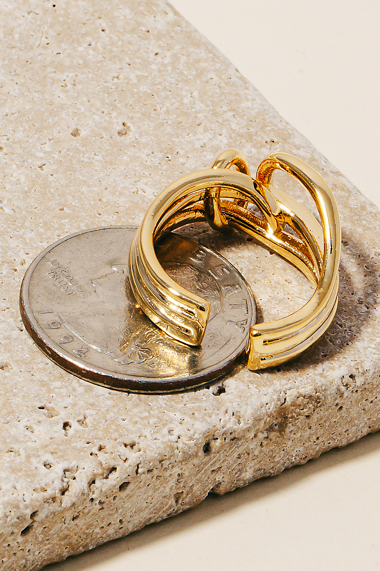 • This piece is the perfect way to add some glamour to your look, this ring incorporates a remarkable triple layered metallic knot open band design. Transform your outfit into a fashion masterpiece with this versatile ring, an essential for the style-conscious individual. Available in G.