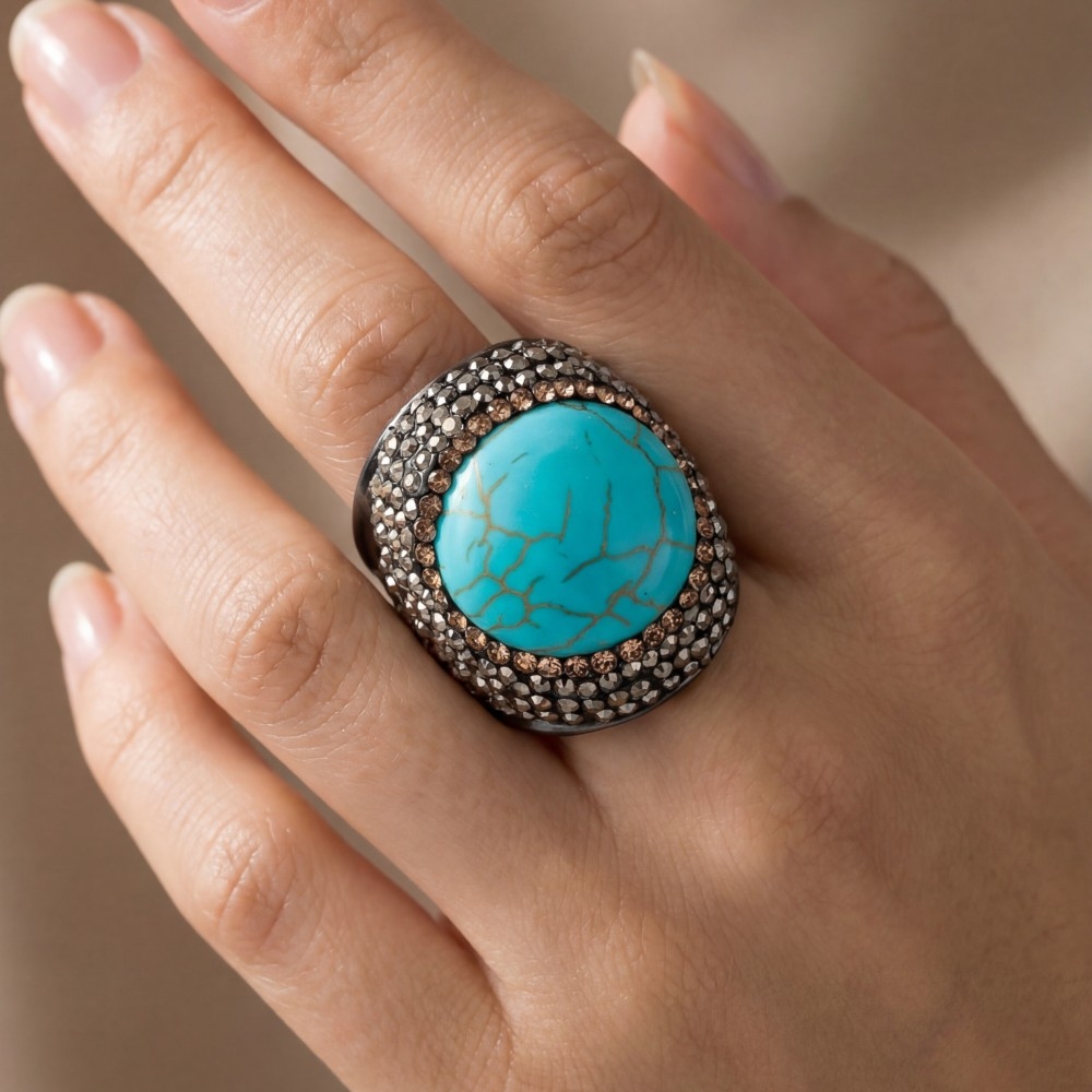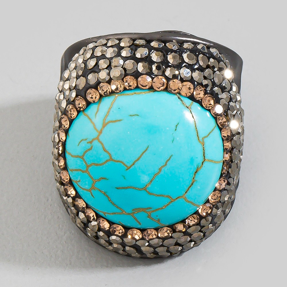 - This piece is perfect for those who want to showcase their unique style, this ring emanates an elegant turquoise stone pave statement design. The perfect ring for completing any outfit, whether you're dressing up or keeping it casual. This item is sold in packs of 1.