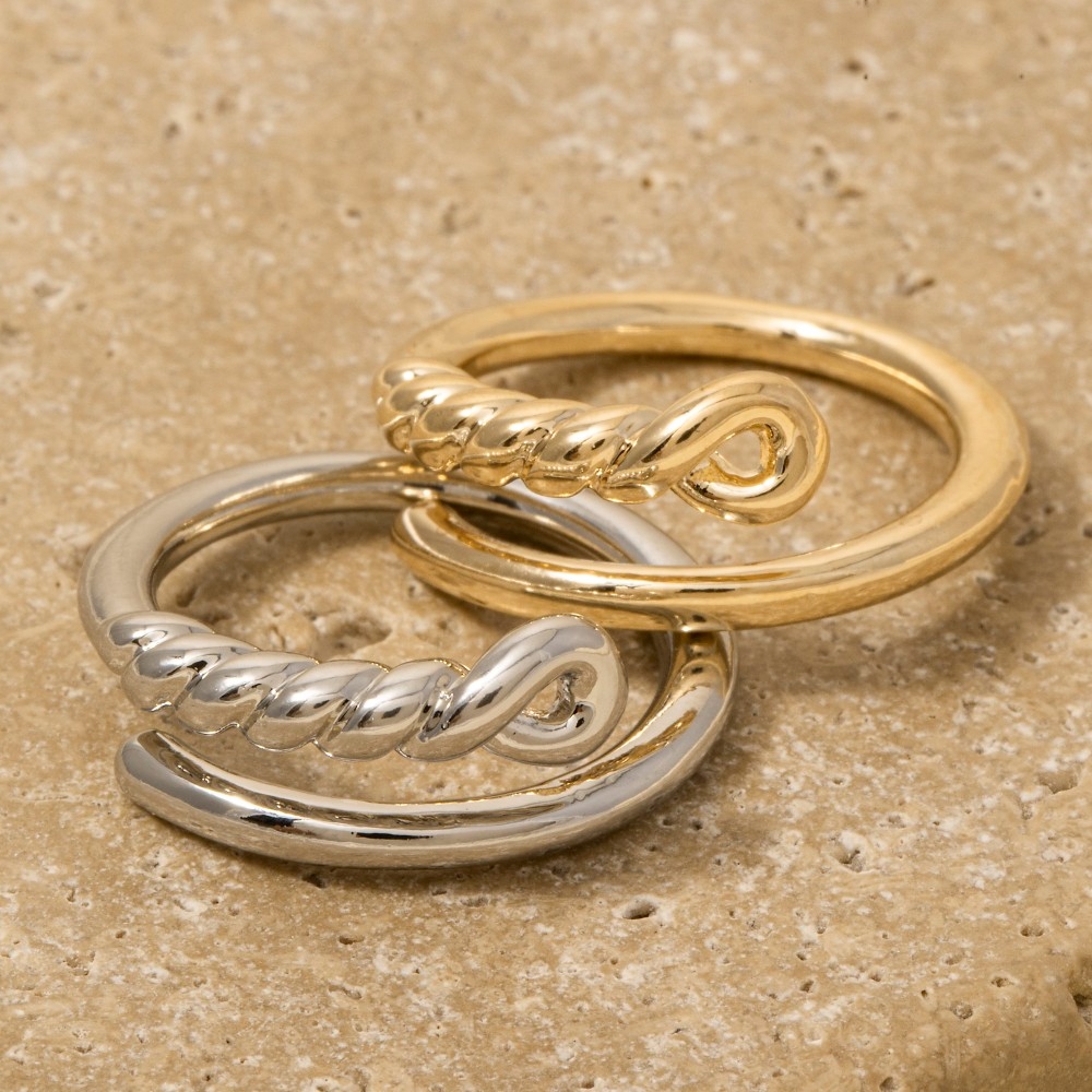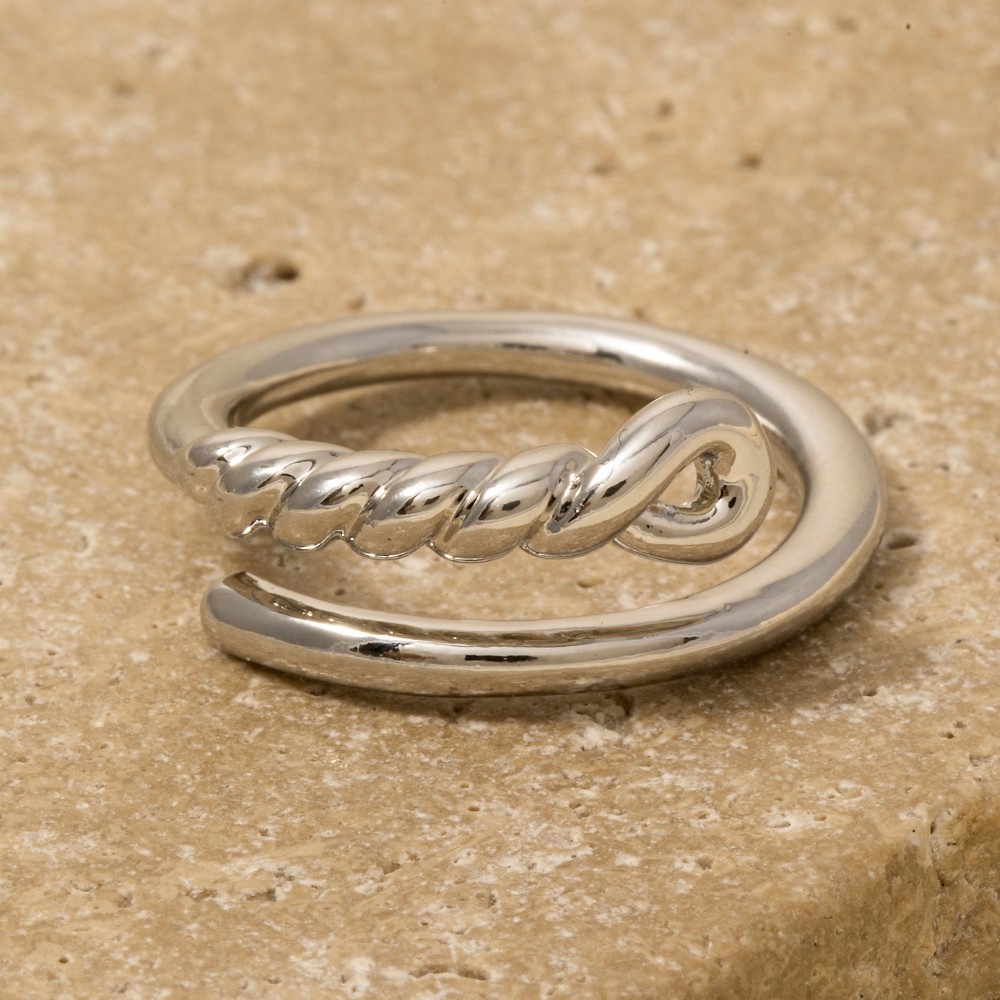• A timeless piece that you'll wear for years to come, this ring incorporates a flawless twisted accent open band design. Elevate your fashion IQ with this versatile ring, designed to seamlessly integrate into any style profile. Available in G, S. This item is sold in packs of 1.