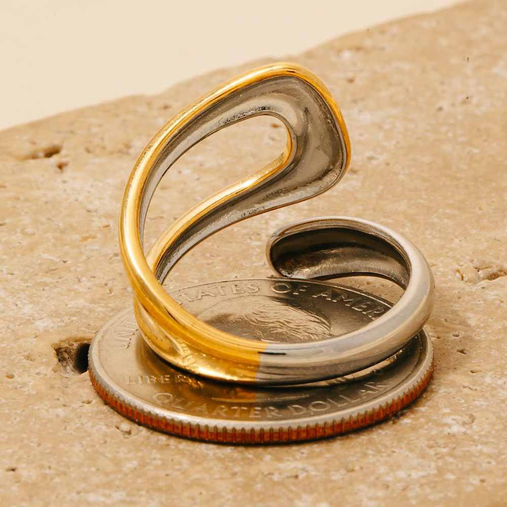 • A timeless piece that you'll wear for years to come, this ring emanates an elegant two tone wrap around band design. Infuse elegance into your daily wardrobe with the versatile charm of this must-have ring. Available in GDMRH. This item is sold in packs of 1.