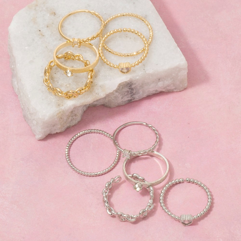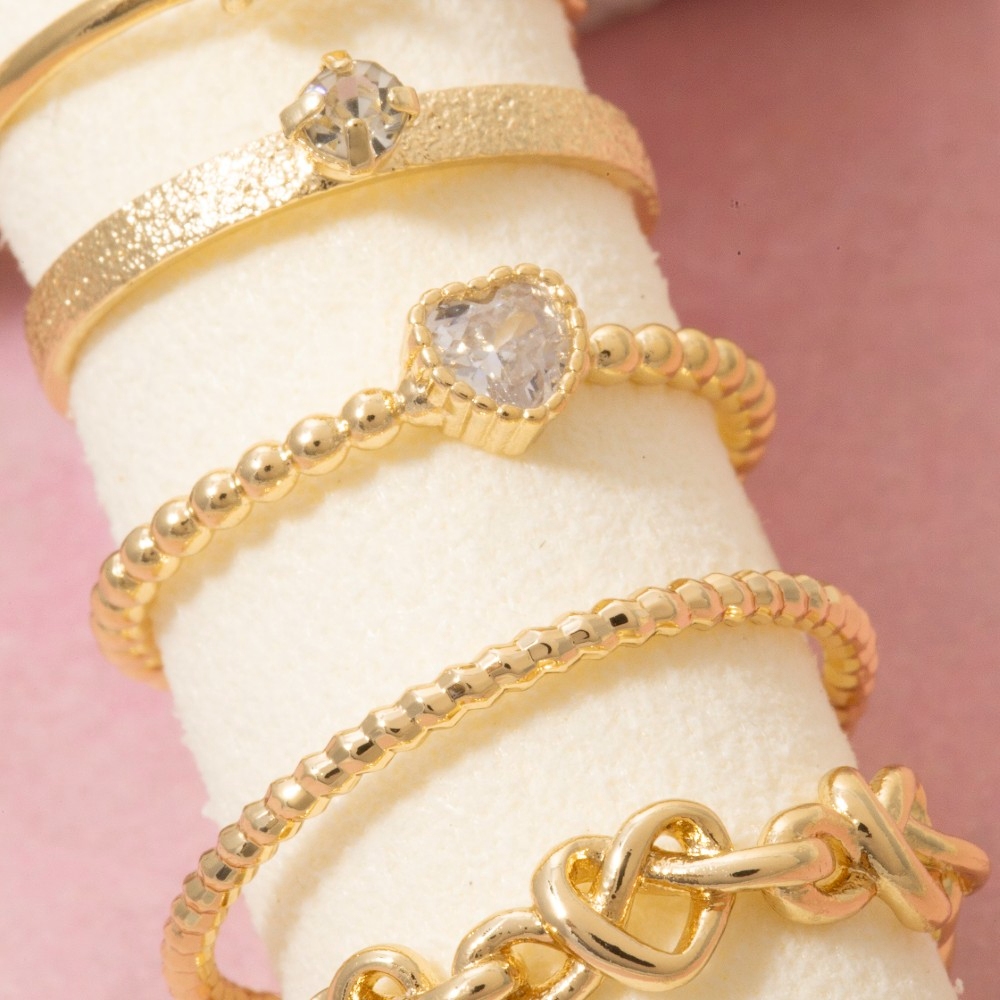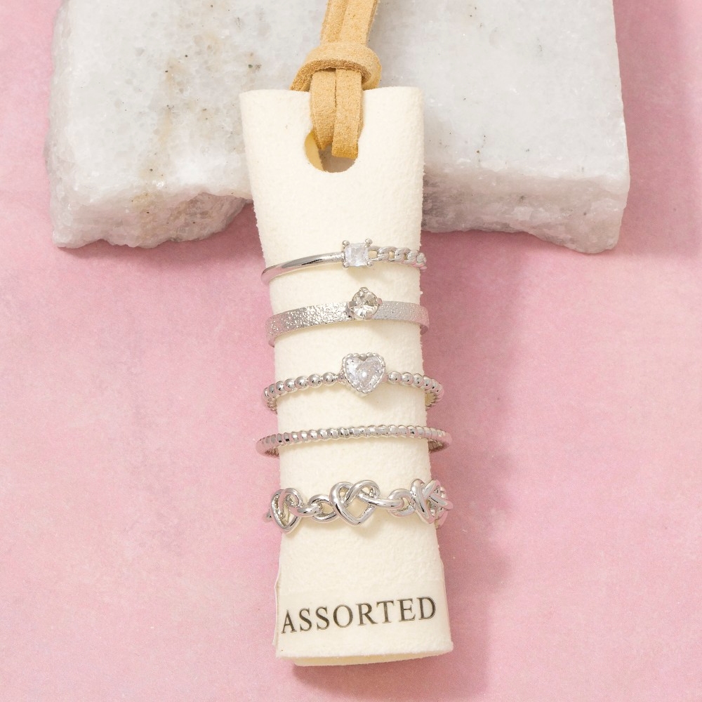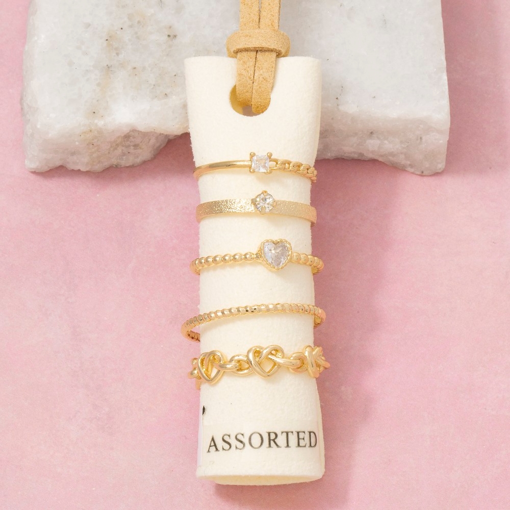 Sleek, modern, and always stylish, this ring includes a stunning assorted heart cubic zirconia set design. Elevate your outfit with this stylish ring that's perfect for any occasion. Available in GDCRY, RHCRY. This item is sold in packs of 1.