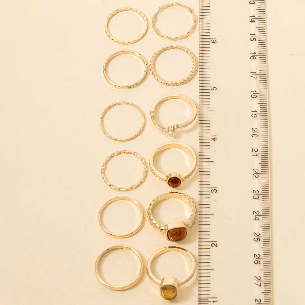 A classic design with a modern twist, this ring embodies a sophisticated assorted twelve piece stone set design. This item is the perfect way to add some texture and interest to any outfit. Available in GDMLT, RHMLT. This item is sold in packs of 1.