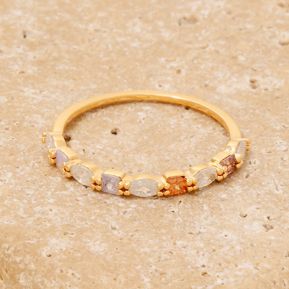 Bold and daring, this ring flaunts a luxurious cz oval and square row band design. Master the art of accessorizing with this versatile ring, a key element for achieving a chic and polished look. Available in G, S. This item is sold in packs of 1.