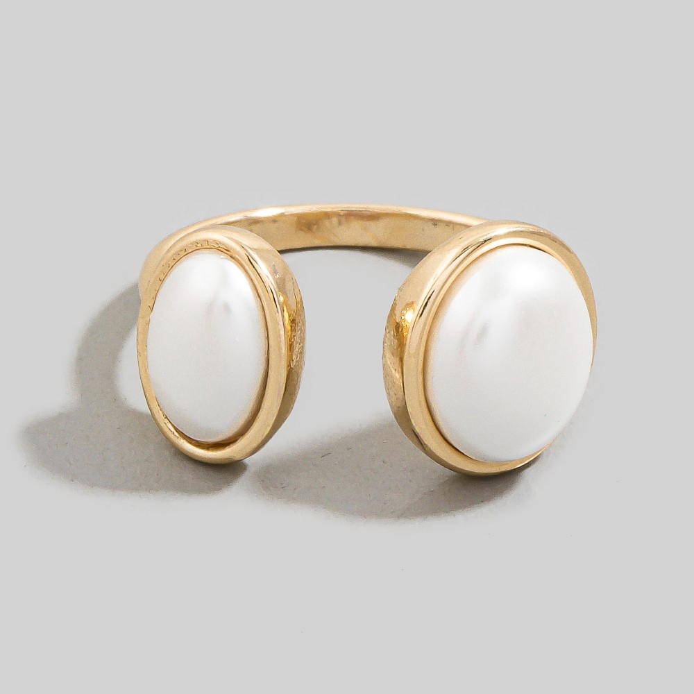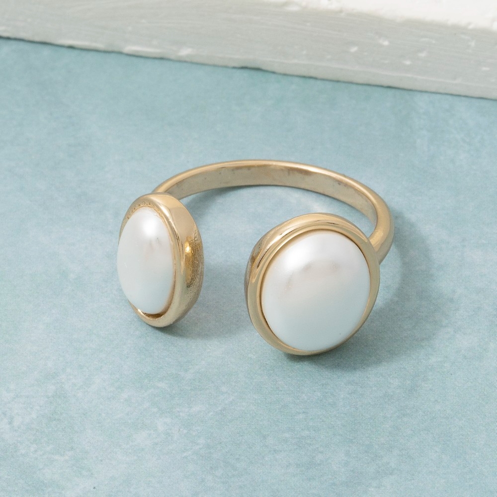 Make a statement, this ring features a distinct double pearl open band design. Elevate your everyday style with this versatile ring, a simple yet impactful addition to your fashion repertoire. Available in G. This item is sold in packs of 1.
