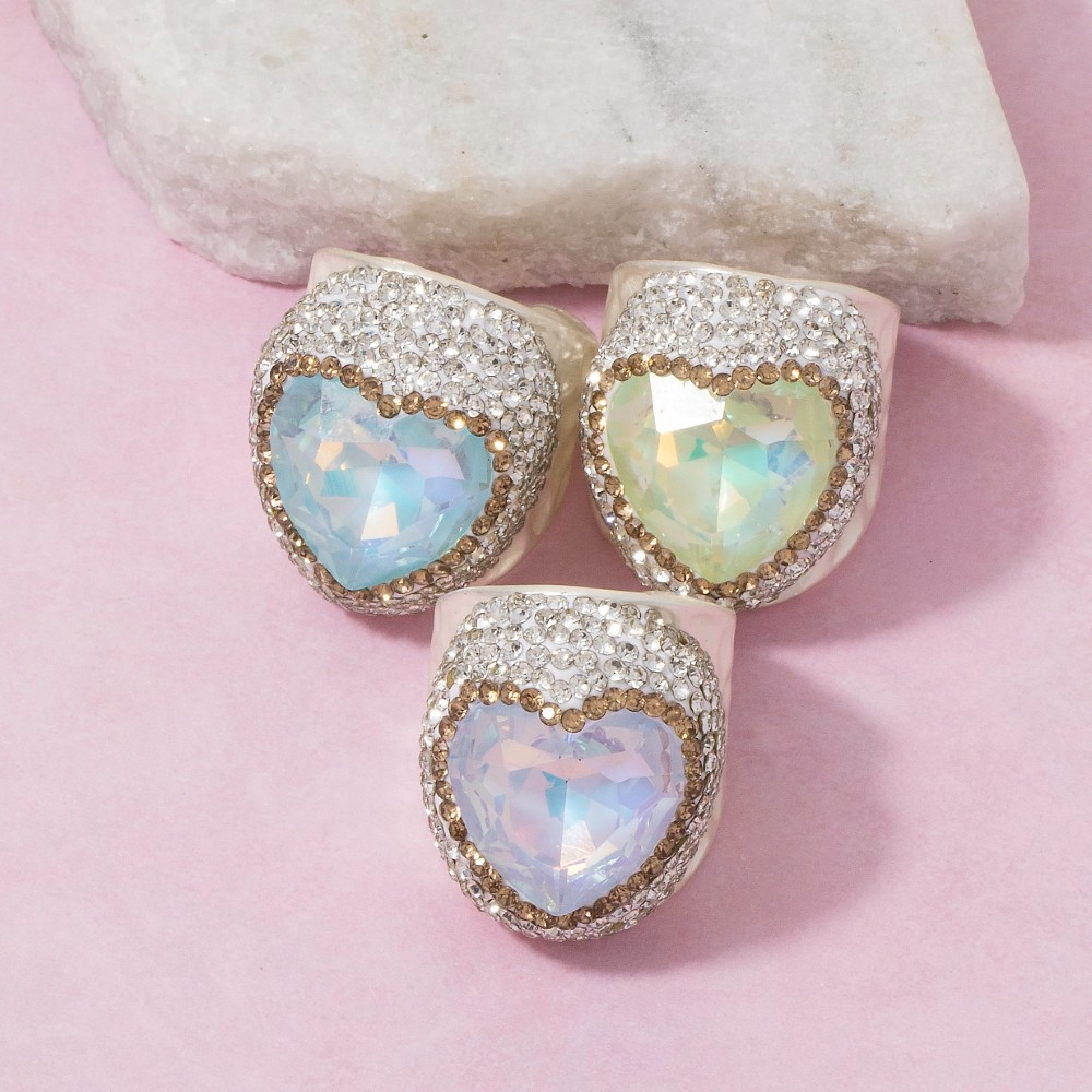 • Stay on-trend and stand out from the crowd, this ring features a distinct faceted crystal heart pave statement design. This ring is ideal for both casual and formal events, adding a touch of sophistication to any outfit. Available in SLBL, SLPU, SLYW. This item is sold in packs of 1.