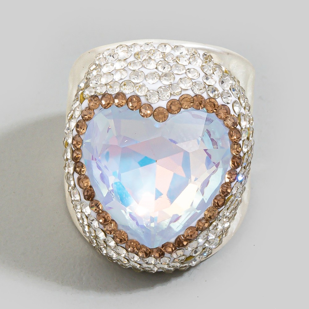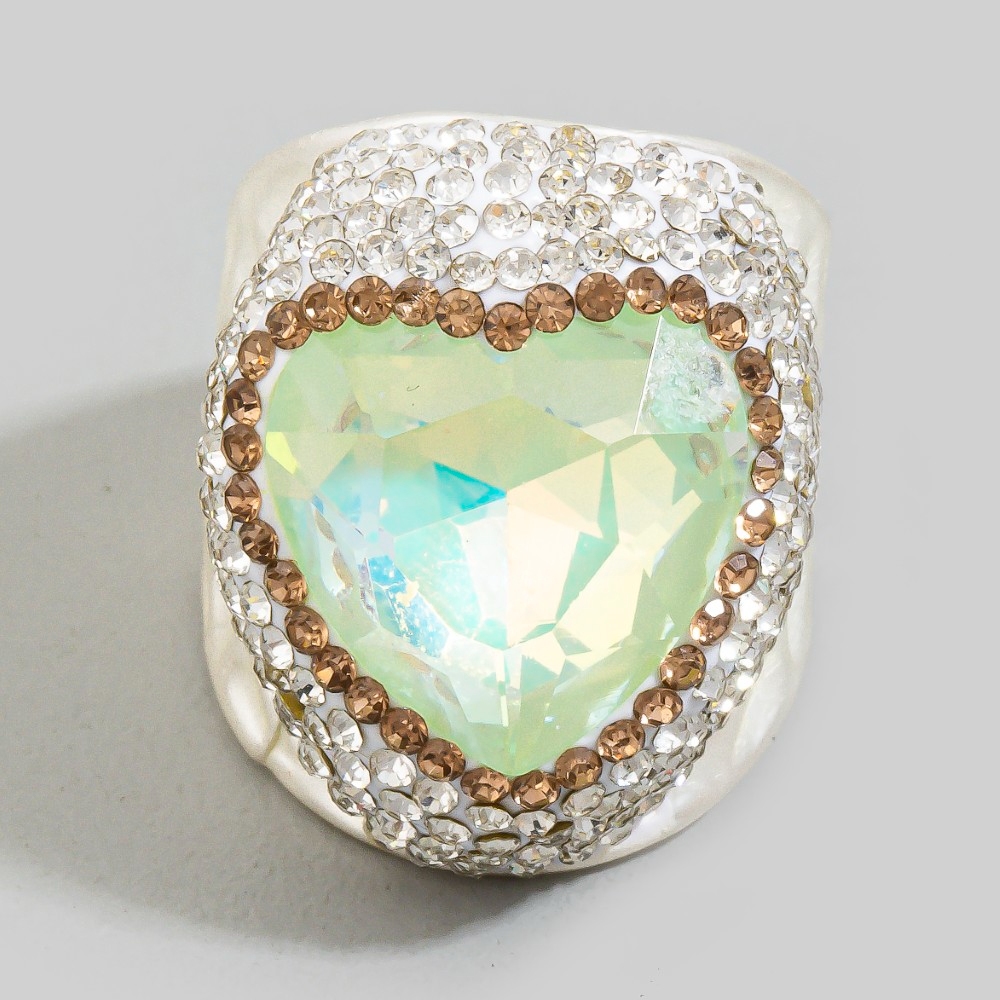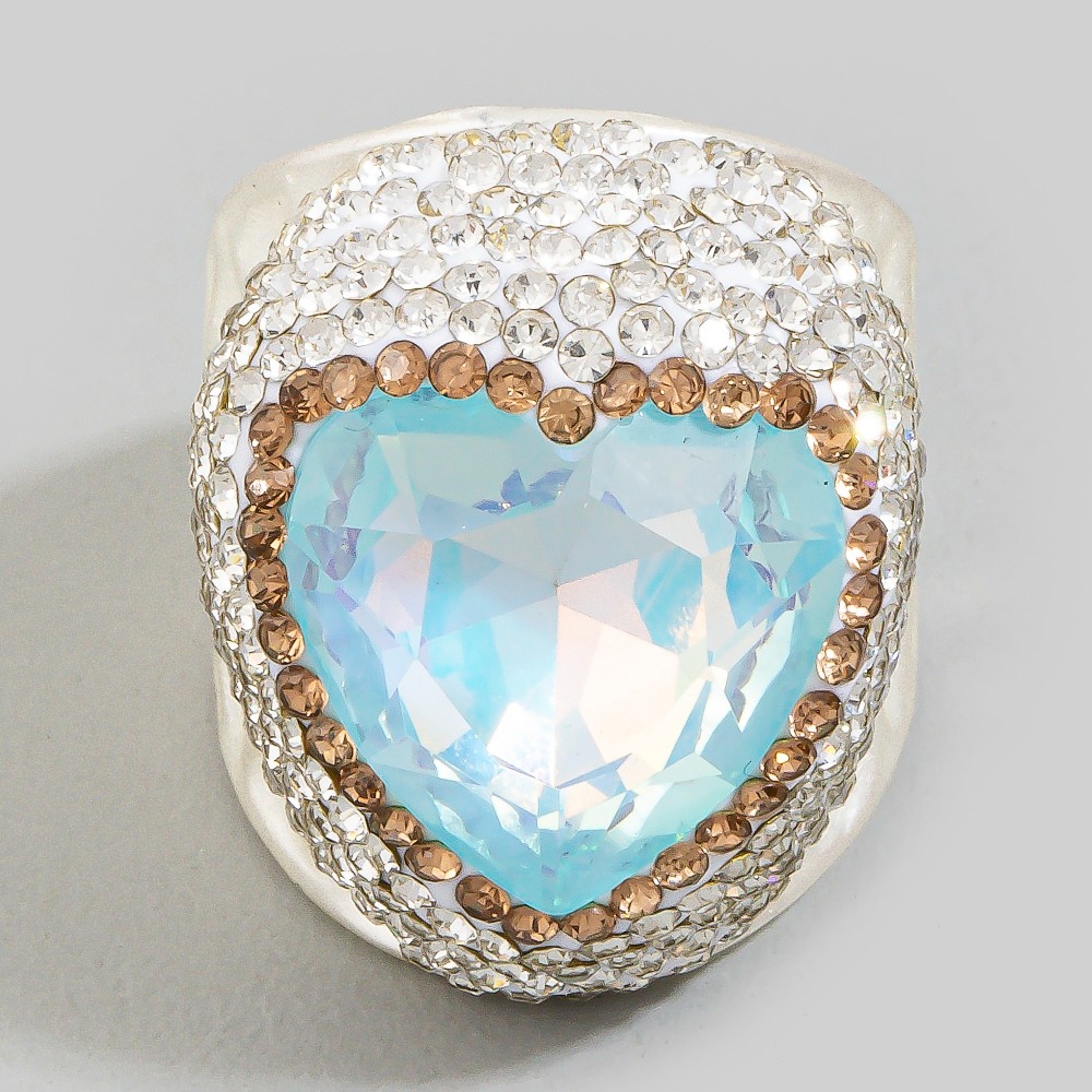 Faceted Crystal Heart Pave Statement Ring