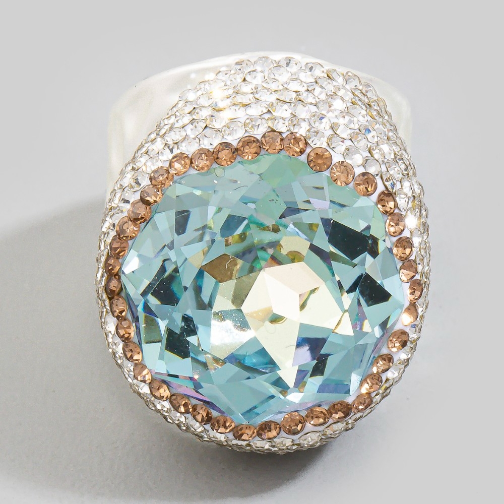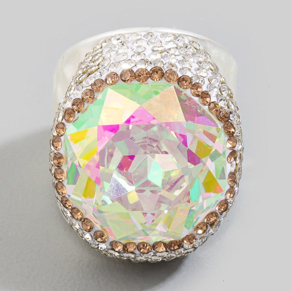 Pave Faceted Crystal Stone Leather Band Statement Ring