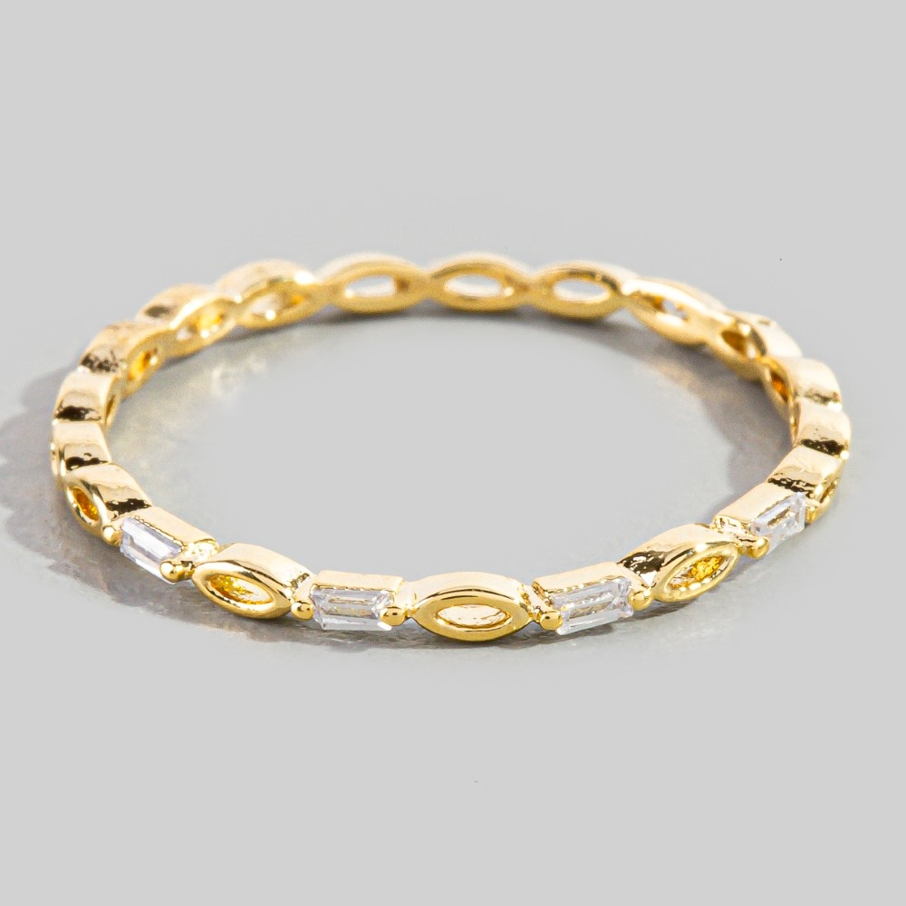• Sleek and modern, this ring contains a special gold dipped delicate baguette chain design. Unleash the power of style with this versatile ring, perfect for enhancing the charm of your wardrobe. Available in G, S. This item is sold in packs of 12.