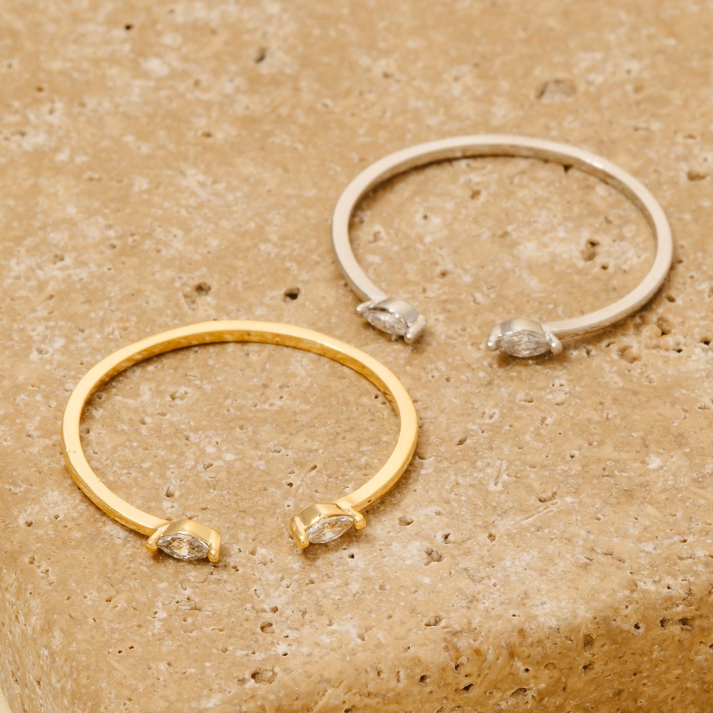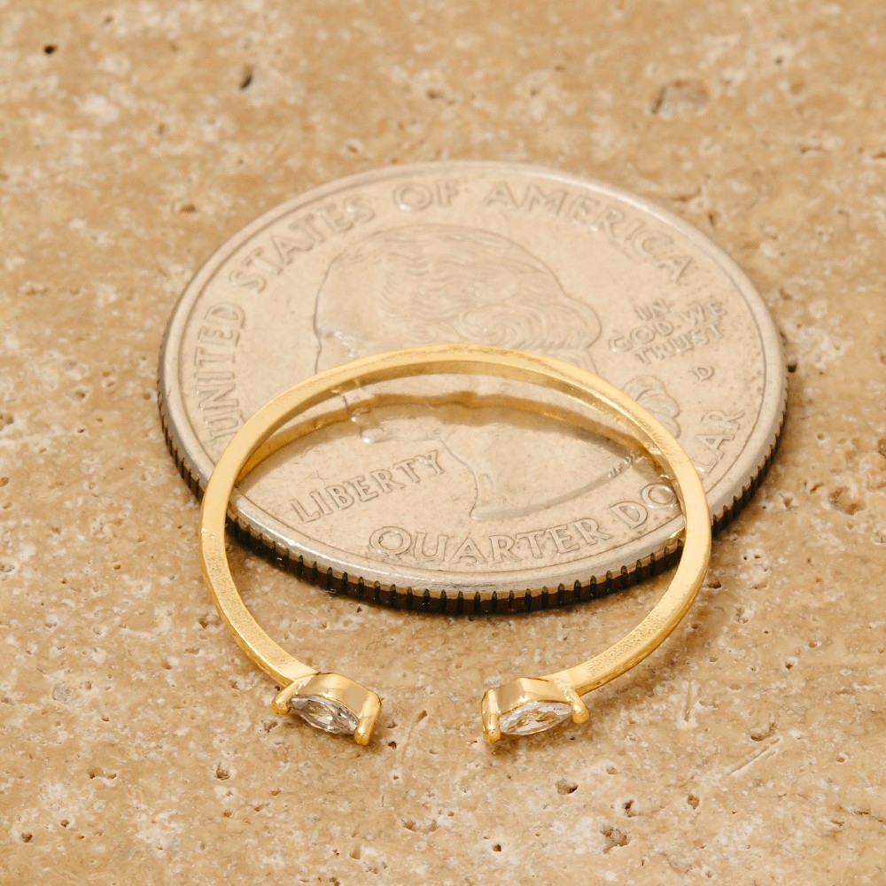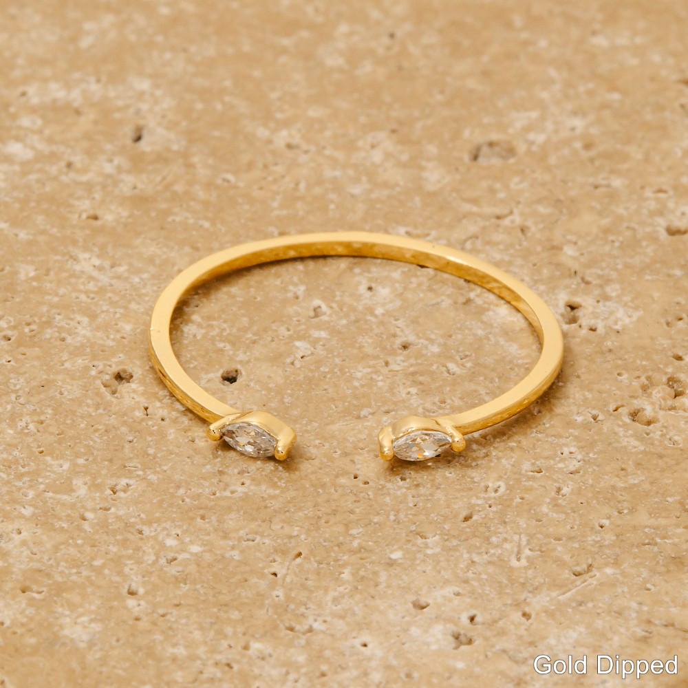 - Effortlessly elevate your style, this ring encompasses a grand gold dipped double marquise cut cubic zirconia open band design. A must-have ring that effortlessly enhances your style, no matter the occasion. Available in G, S. This item is sold in packs of 12.